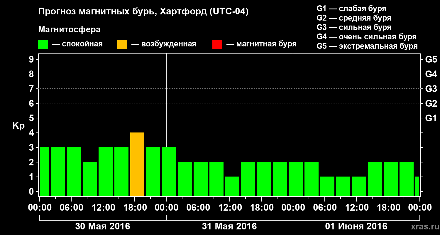 Прогноз магнитных бурь в Хартфорде на 30 мая 2016 года
