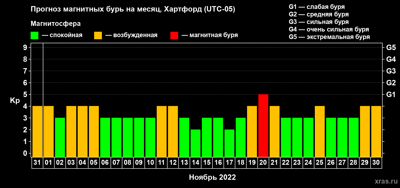 Прогноз магнитных бурь в Хартфорде — 31 октября 2022 года
