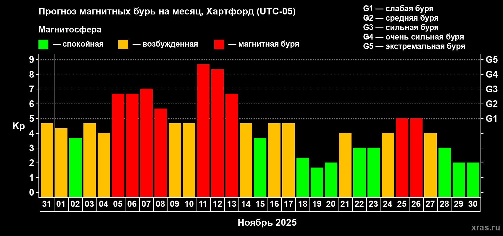Прогноз магнитных бурь в Хартфорде — 31 октября 2025 года