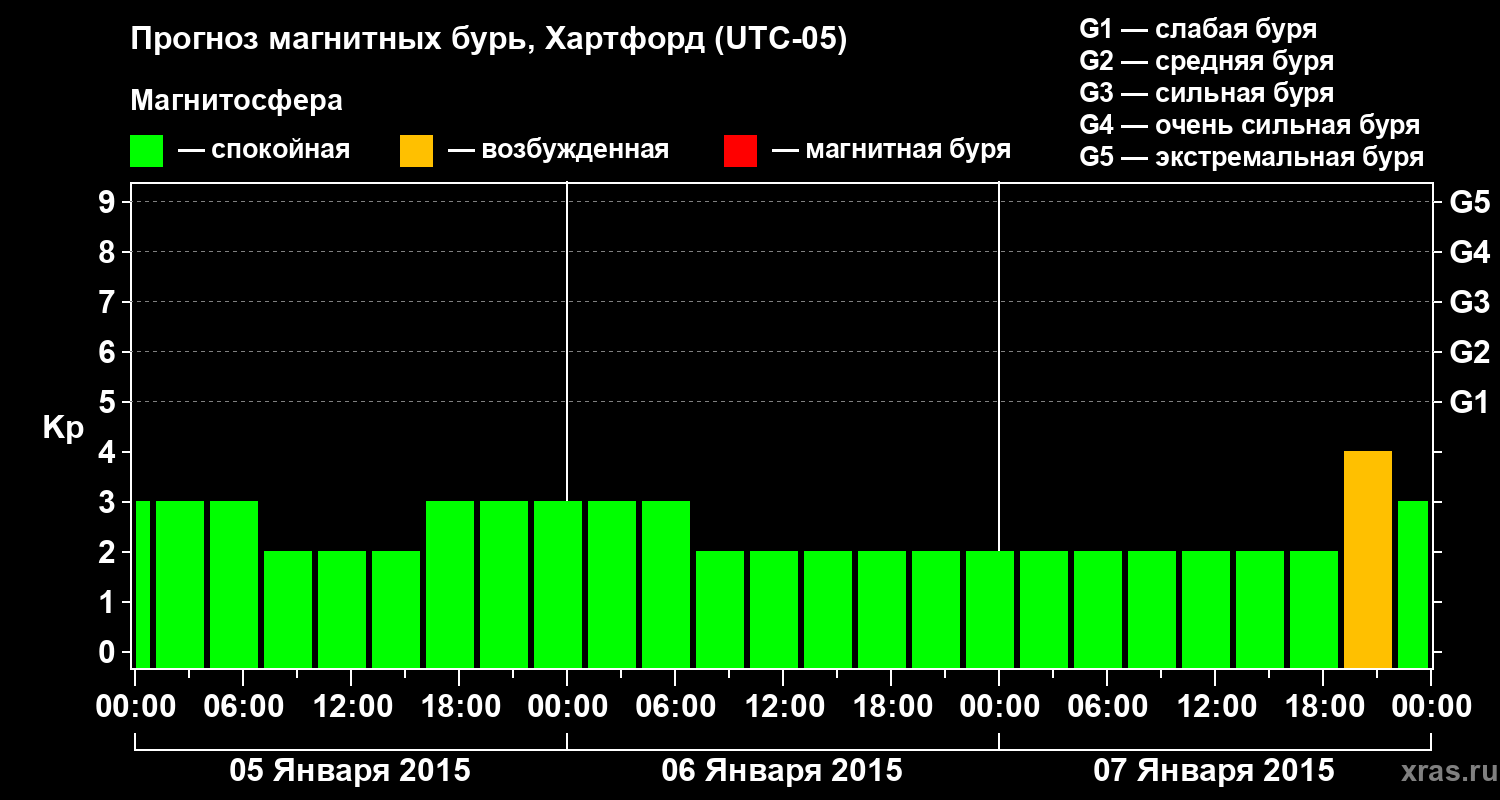 Прогноз магнитных бурь в Хартфорде на 5 января 2015 года