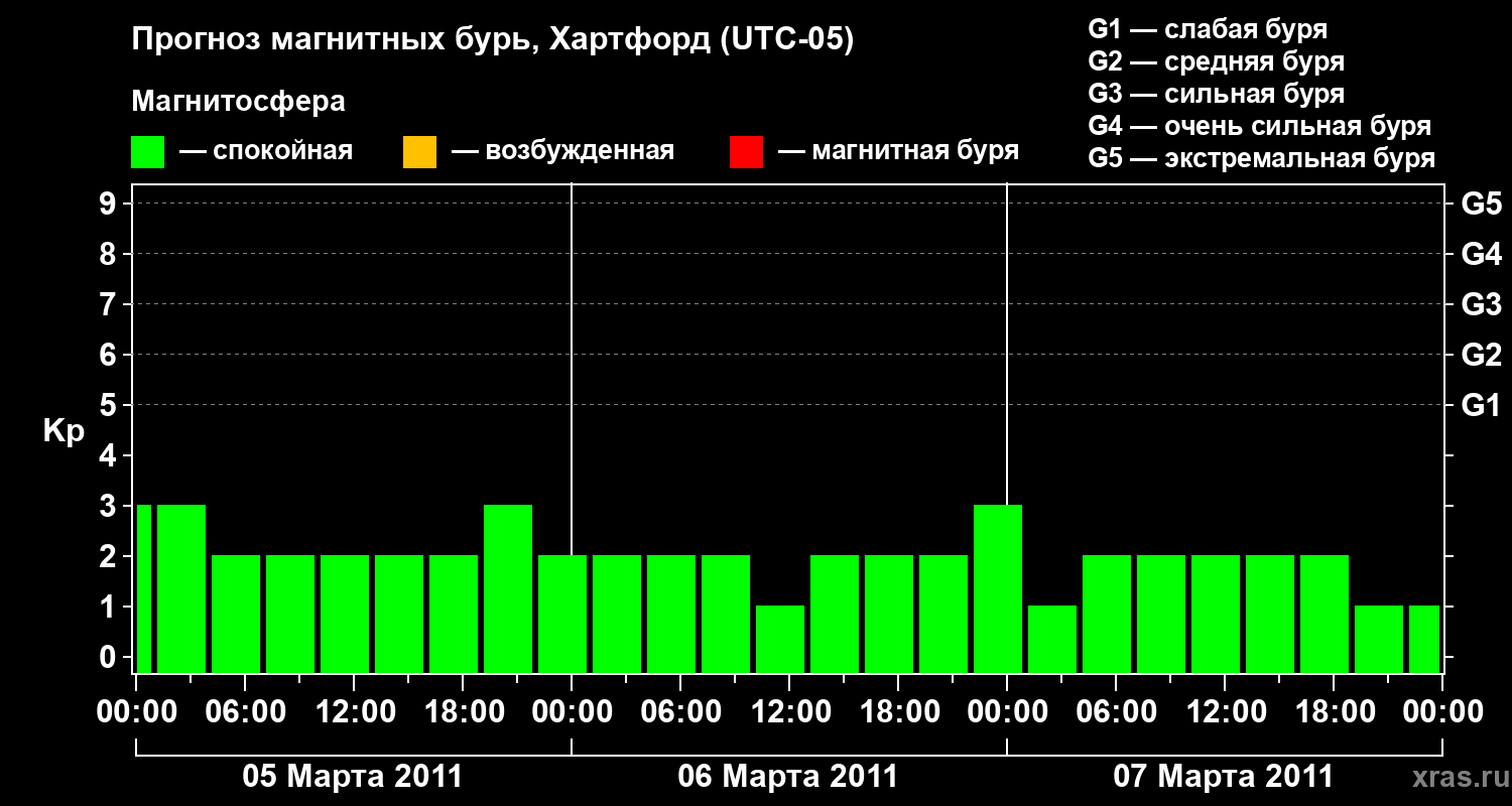 Прогноз магнитных бурь в Хартфорде на 5 марта 2011 года