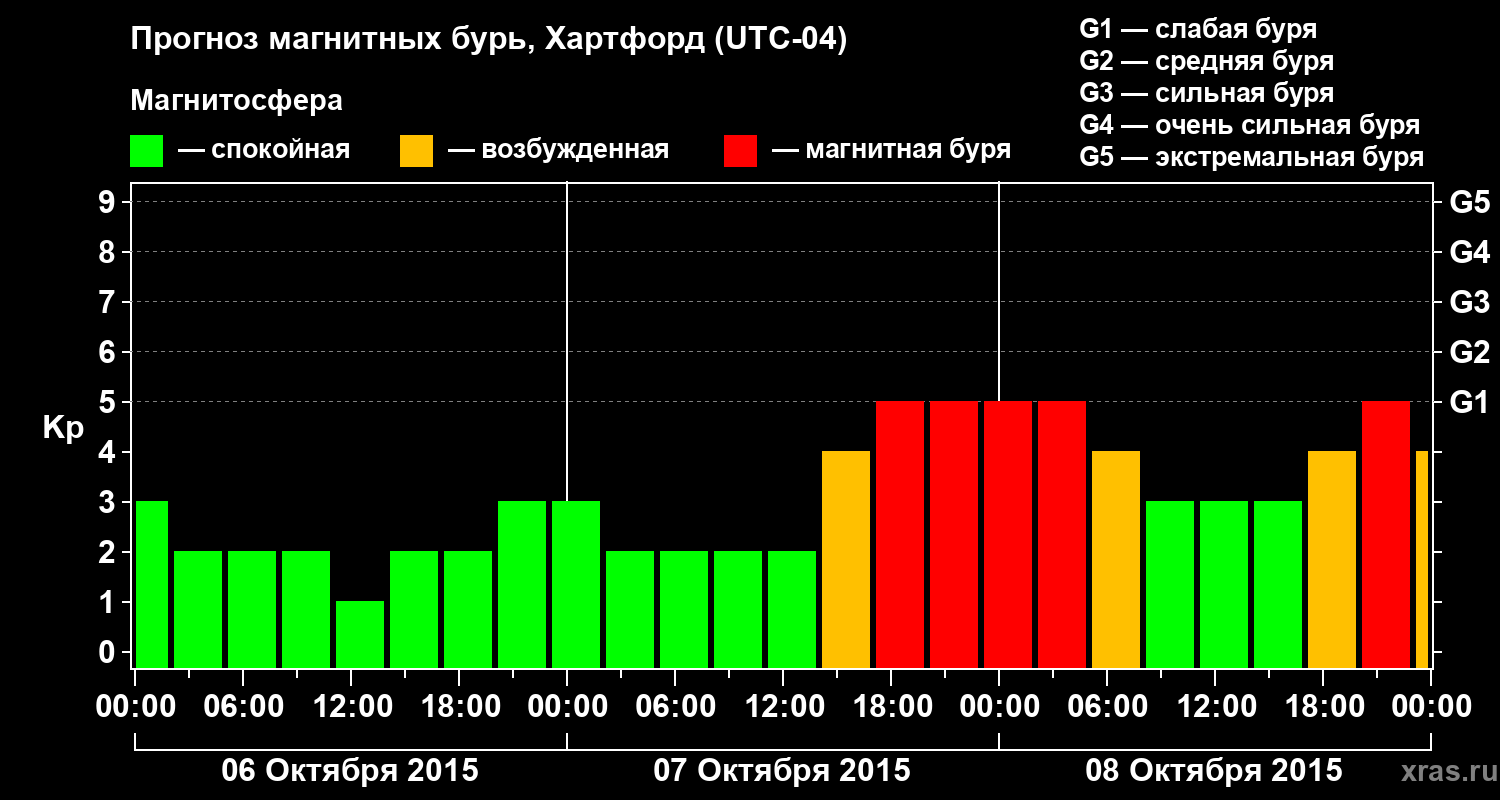 Прогноз магнитных бурь в Хартфорде — 6 октября 2015 года