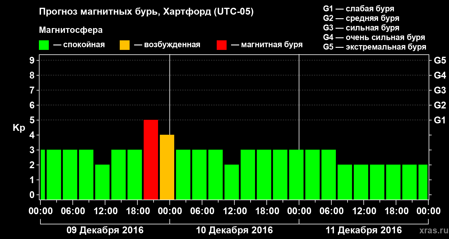 Прогноз магнитных бурь в Хартфорде на 9 декабря 2016 года