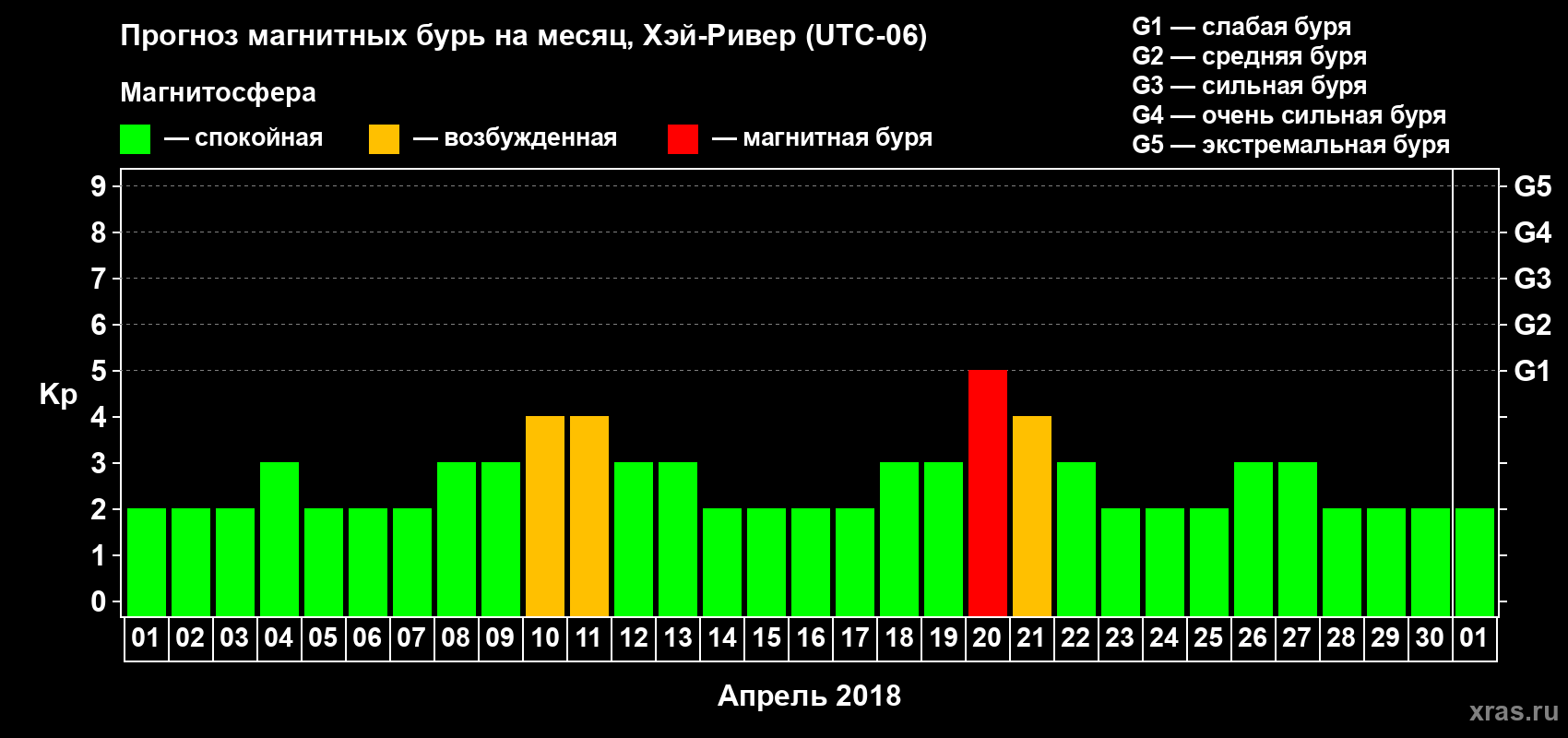 Прогноз магнитных бурь в Хэй-Ривере на 1 апреля 2018 года