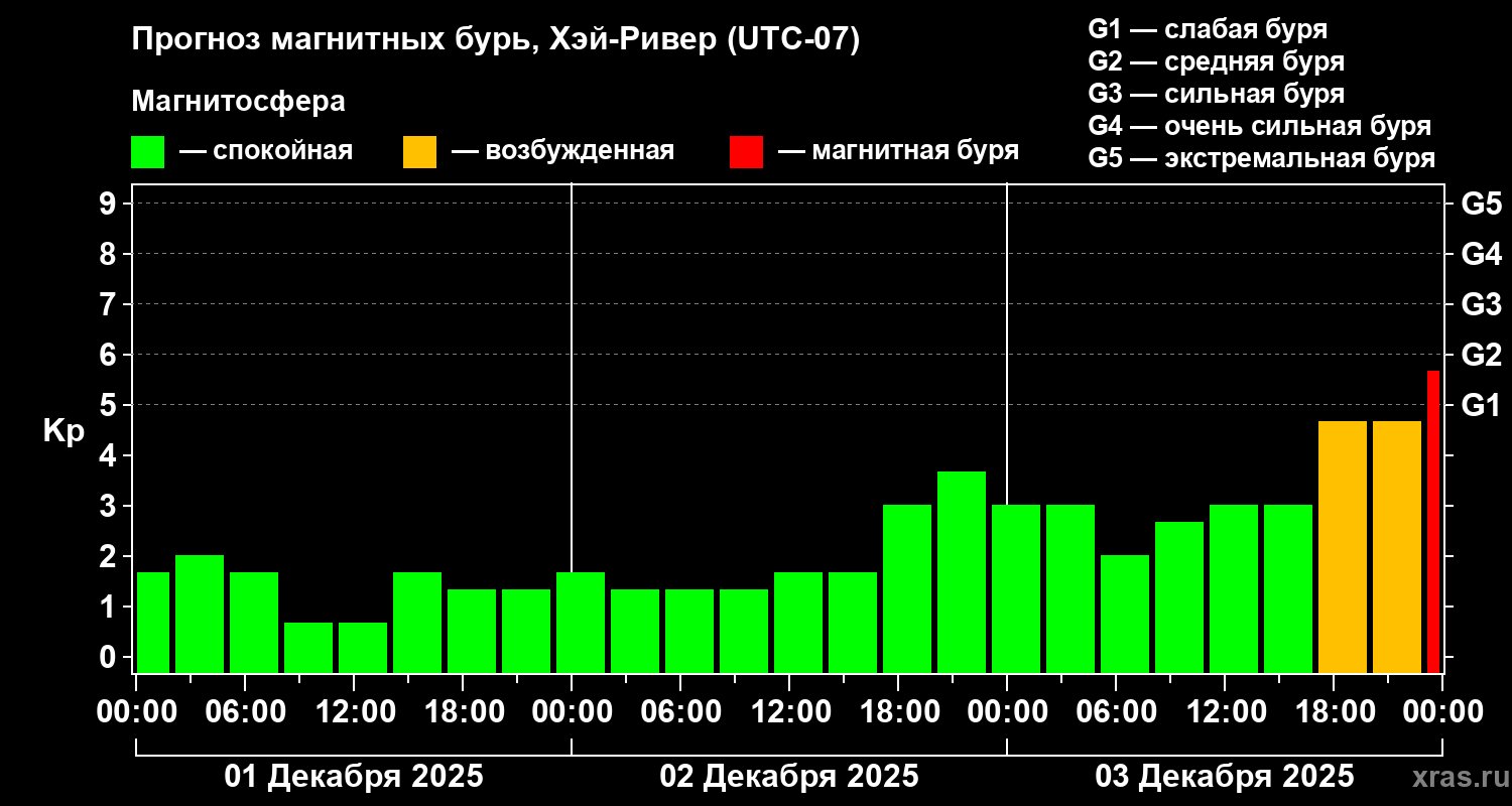 Прогноз магнитных бурь в Хэй-Ривере на 1 декабря 2025 года
