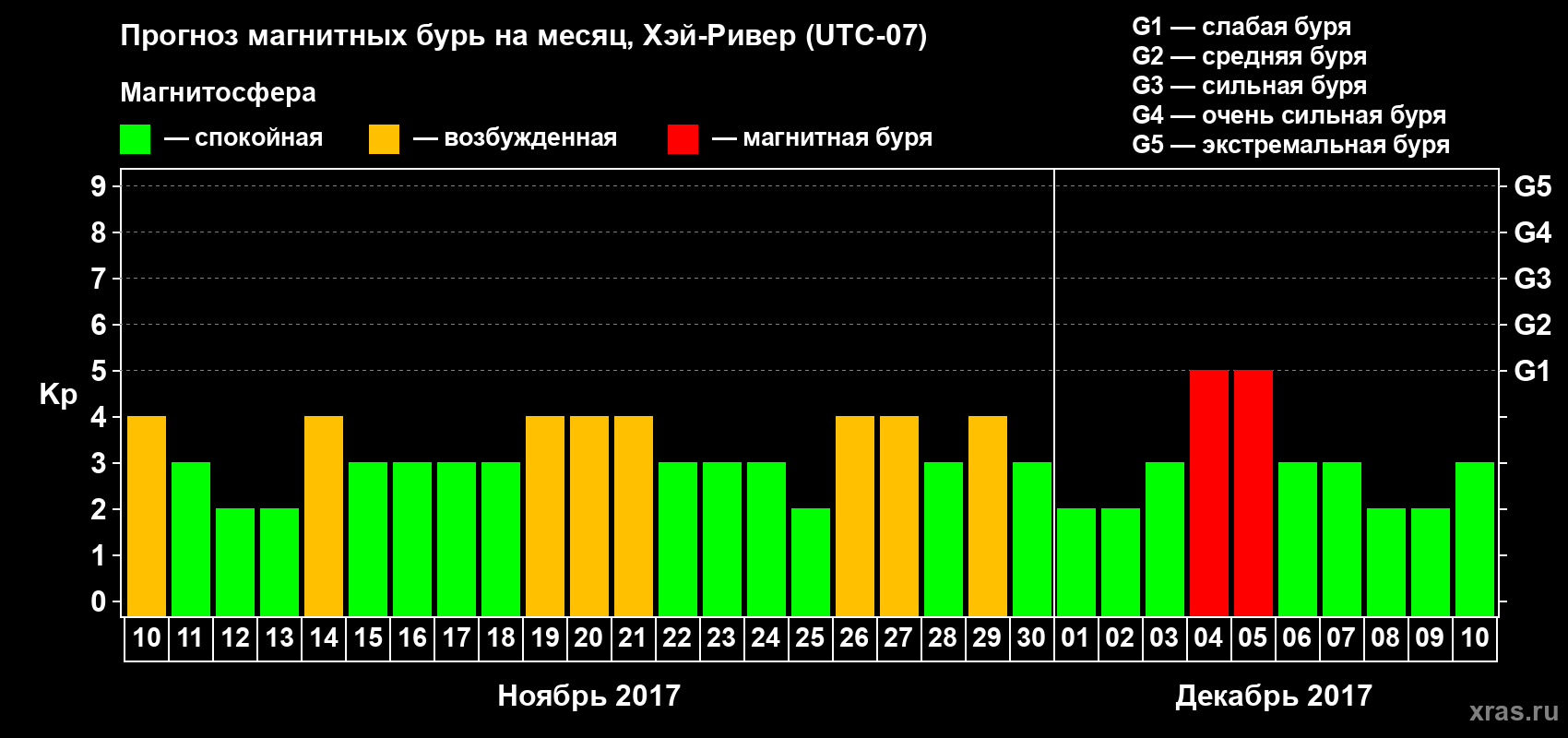 Прогноз магнитных бурь в Хэй-Ривере — 10 ноября 2017 года