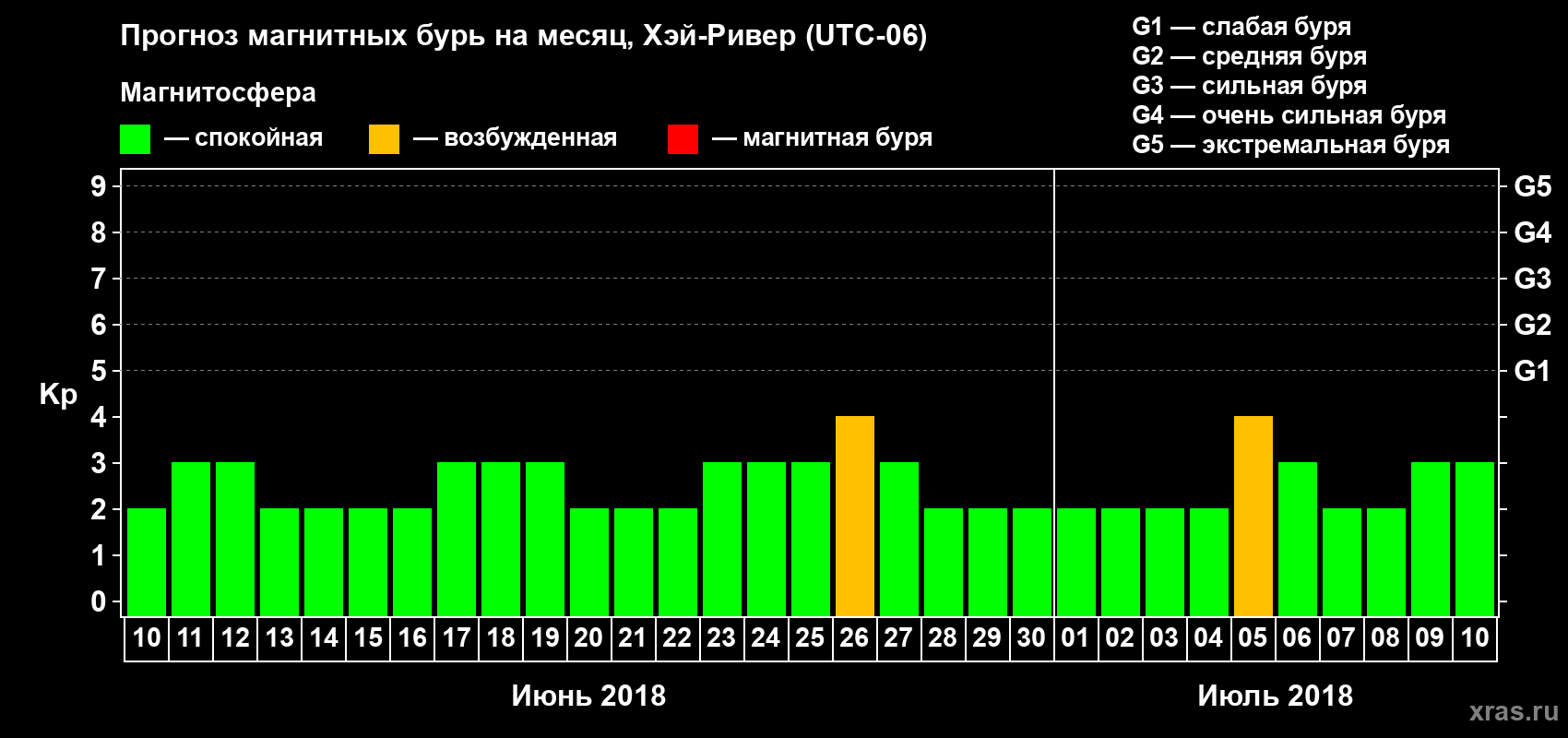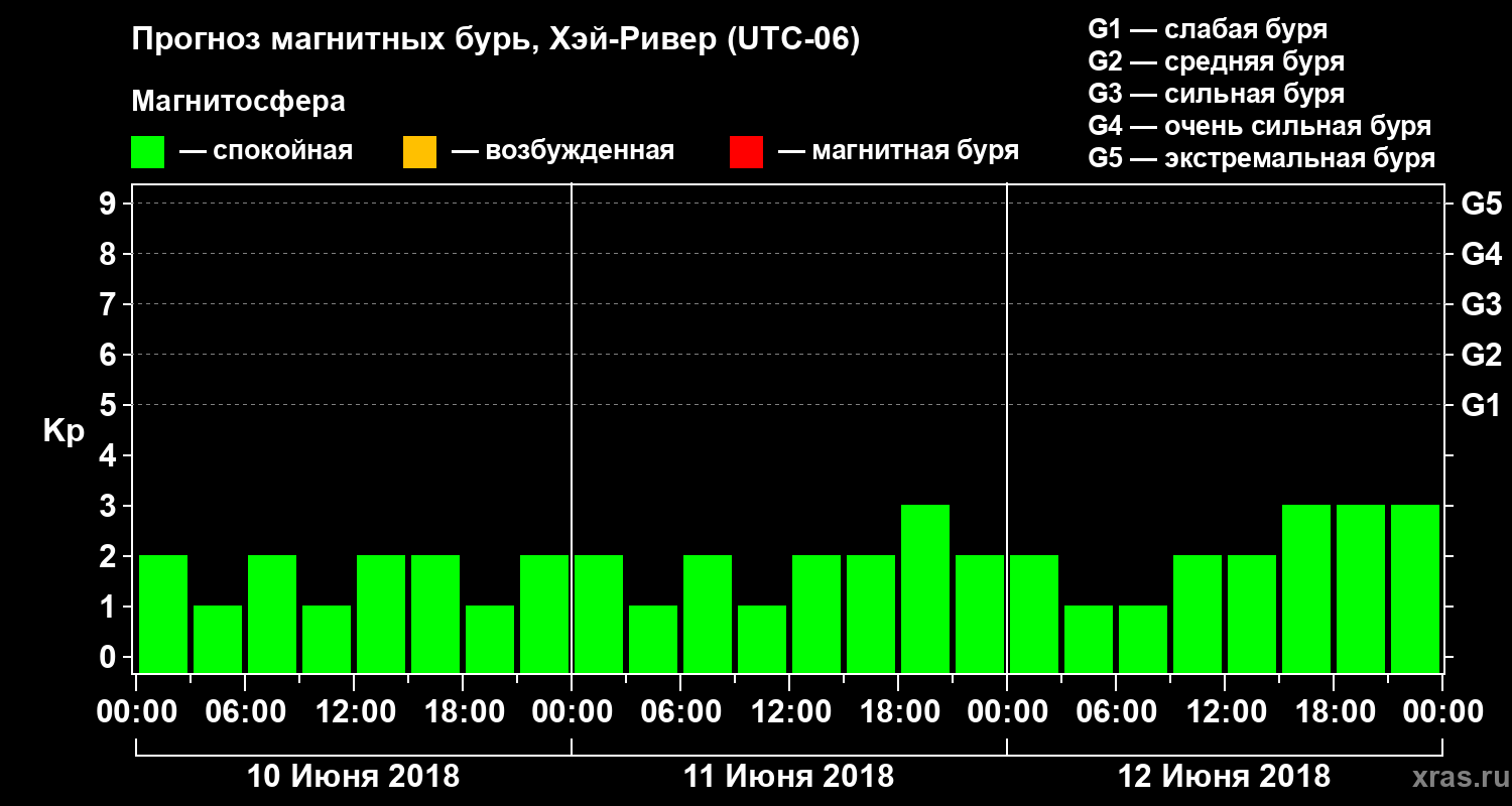 Прогноз магнитных бурь в Хэй-Ривере — 10 июня 2018 года