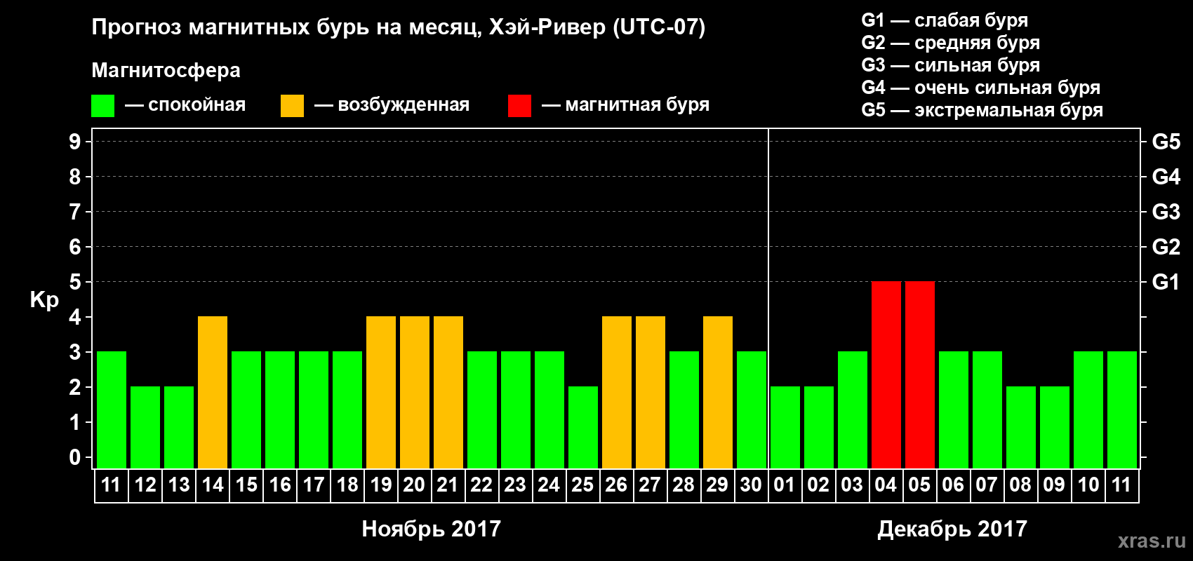 Прогноз магнитных бурь в Хэй-Ривере — 11 ноября 2017 года