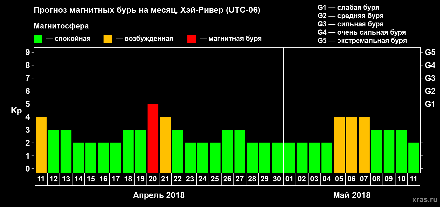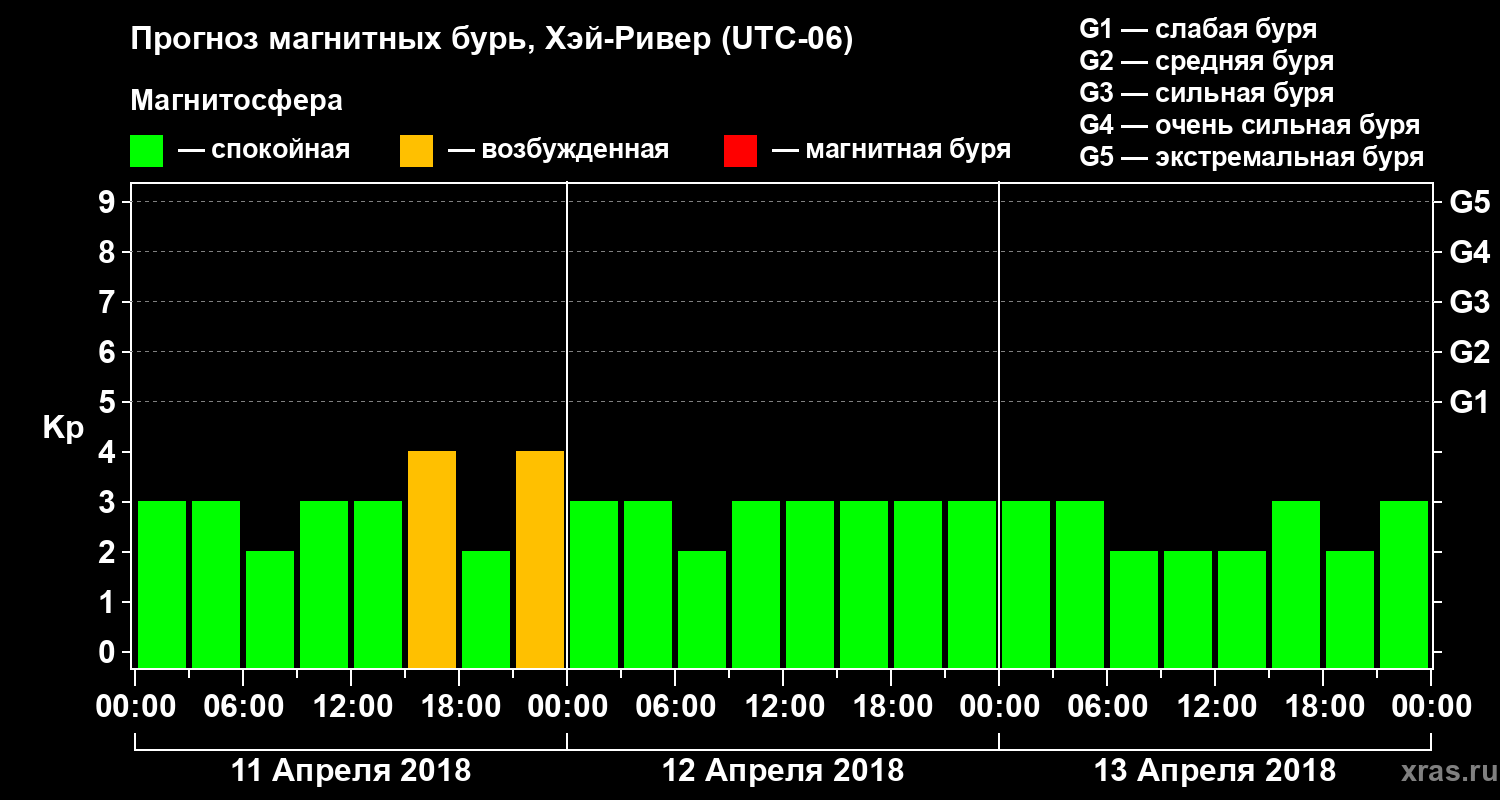Прогноз магнитных бурь в Хэй-Ривере на 11 апреля 2018 года
