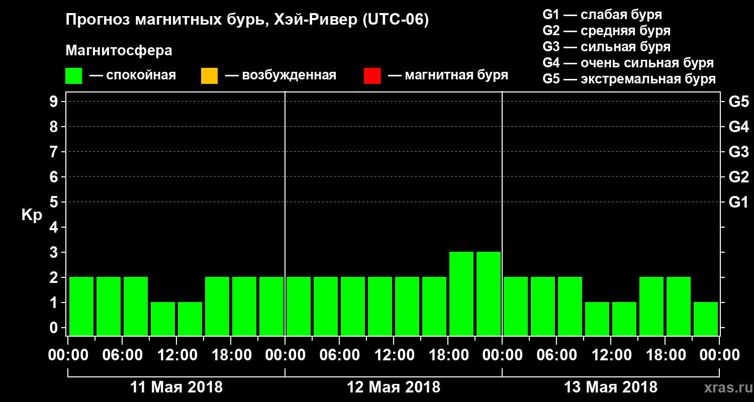 Прогноз магнитных бурь в Хэй-Ривере на 11 мая 2018 года