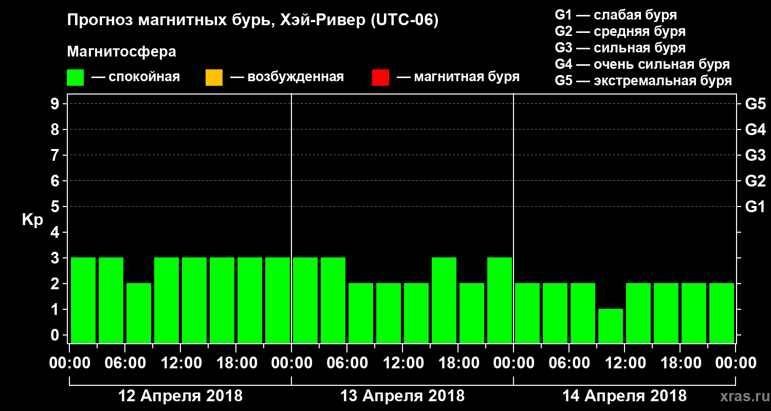 Прогноз магнитных бурь в Хэй-Ривере на 12 апреля 2018 года