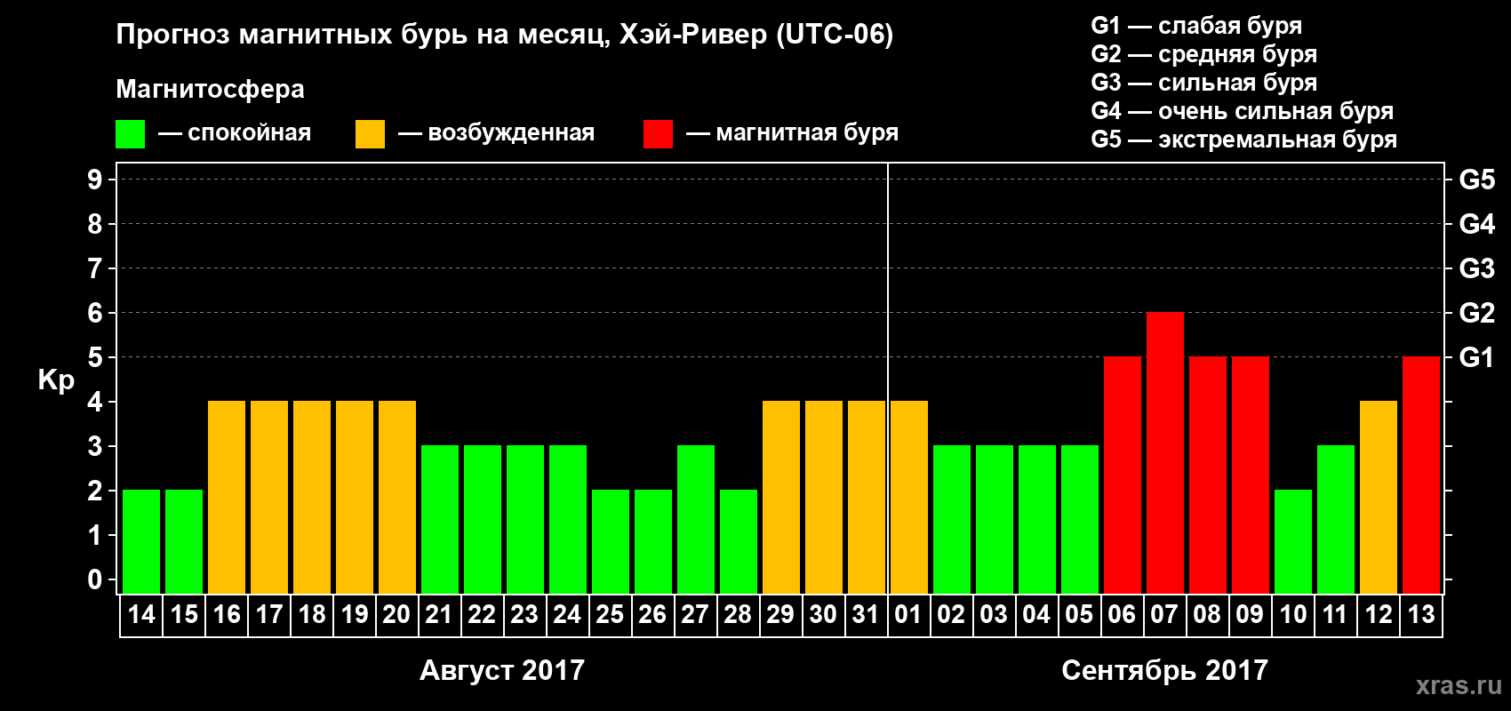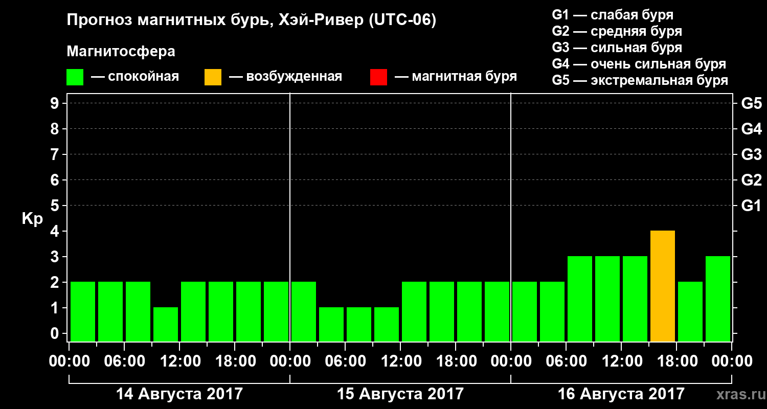 Прогноз магнитных бурь в Хэй-Ривере — 14 августа 2017 года