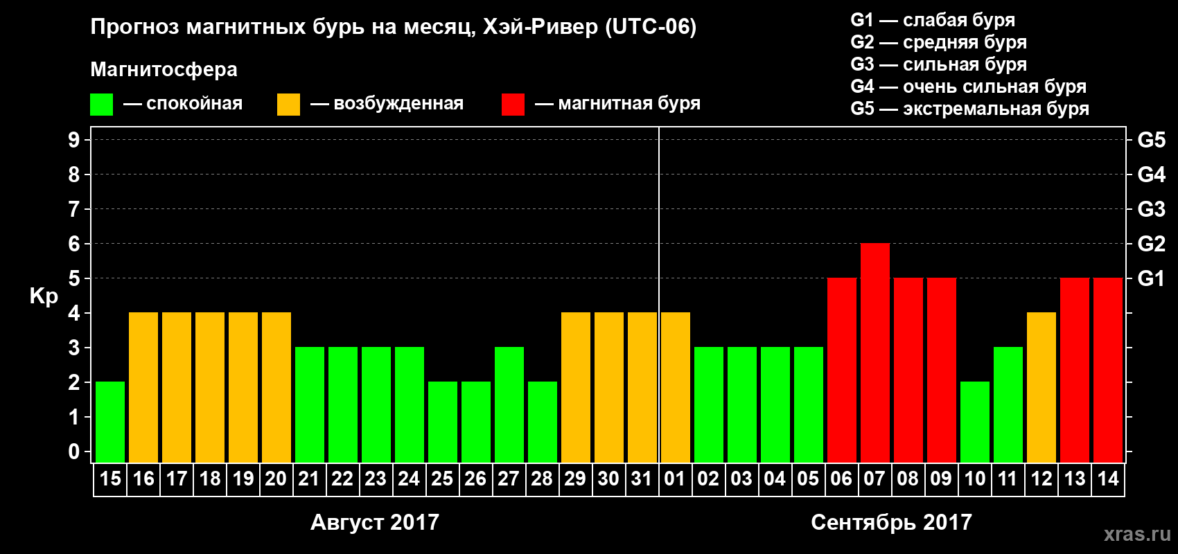 Прогноз магнитных бурь в Хэй-Ривере — 15 августа 2017 года