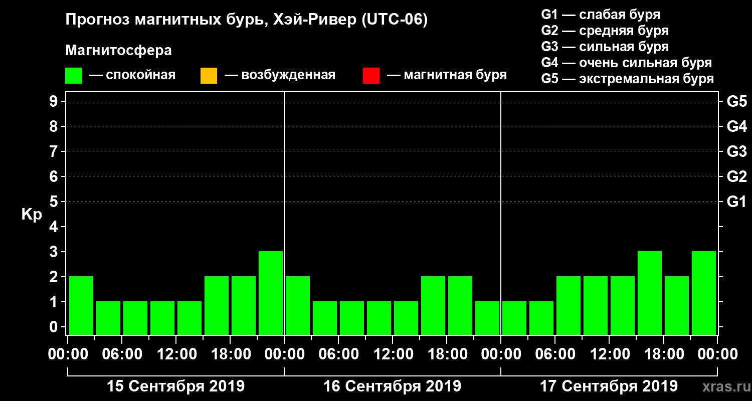 Прогноз магнитных бурь в Хэй-Ривере — 15 сентября 2019 года