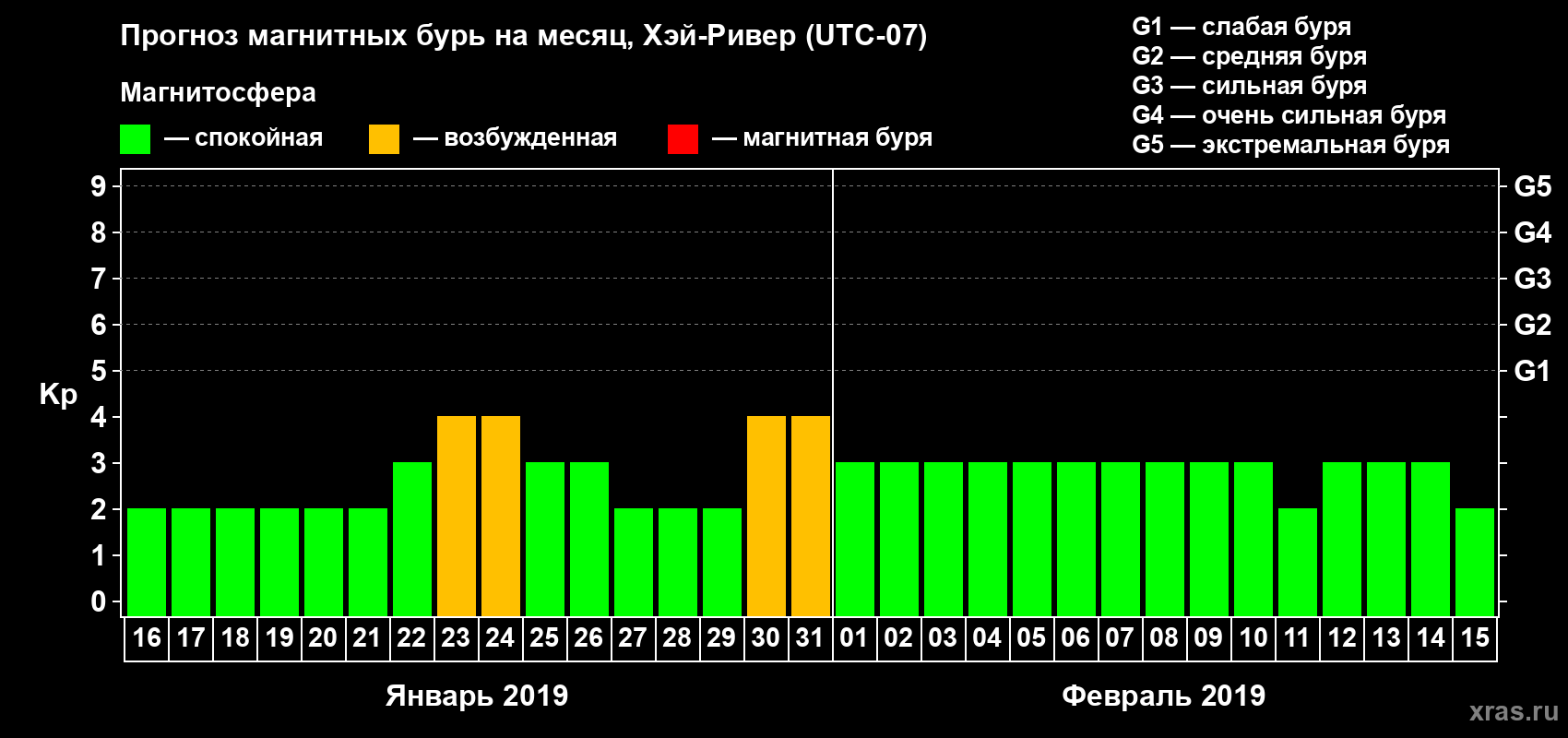 Прогноз магнитных бурь в Хэй-Ривере — 16 января 2019 года