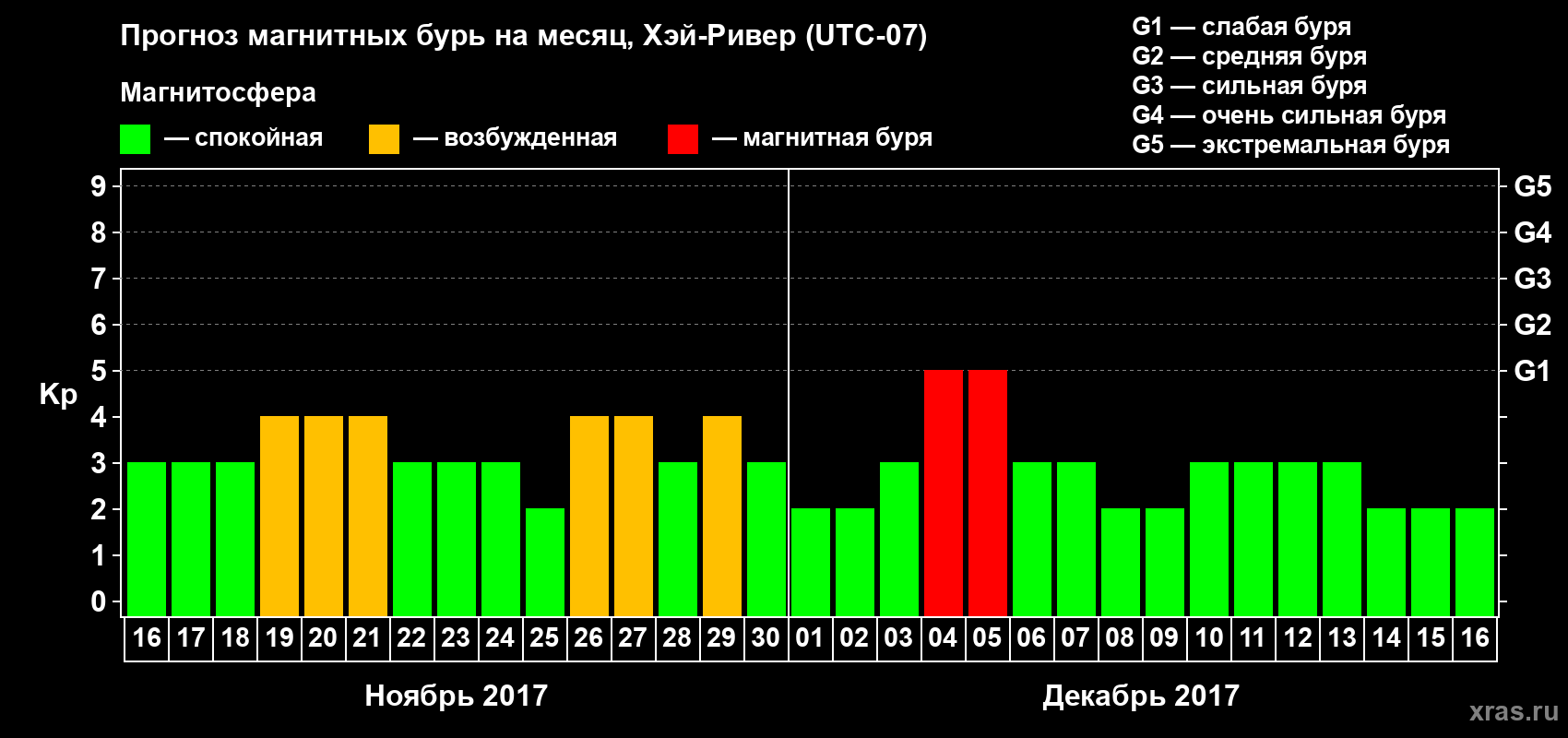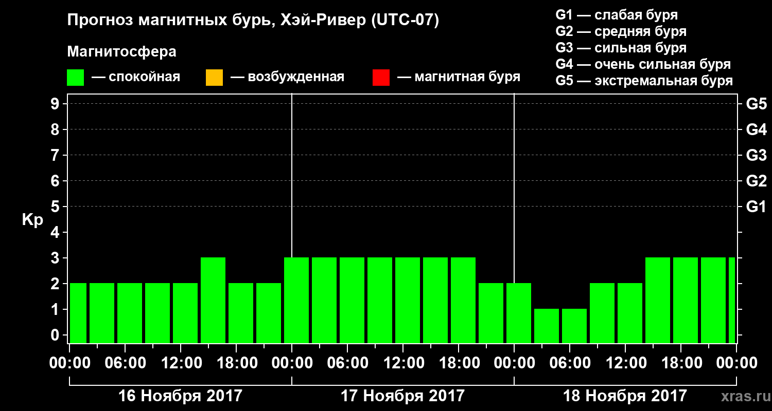 Прогноз магнитных бурь в Хэй-Ривере — 16 ноября 2017 года