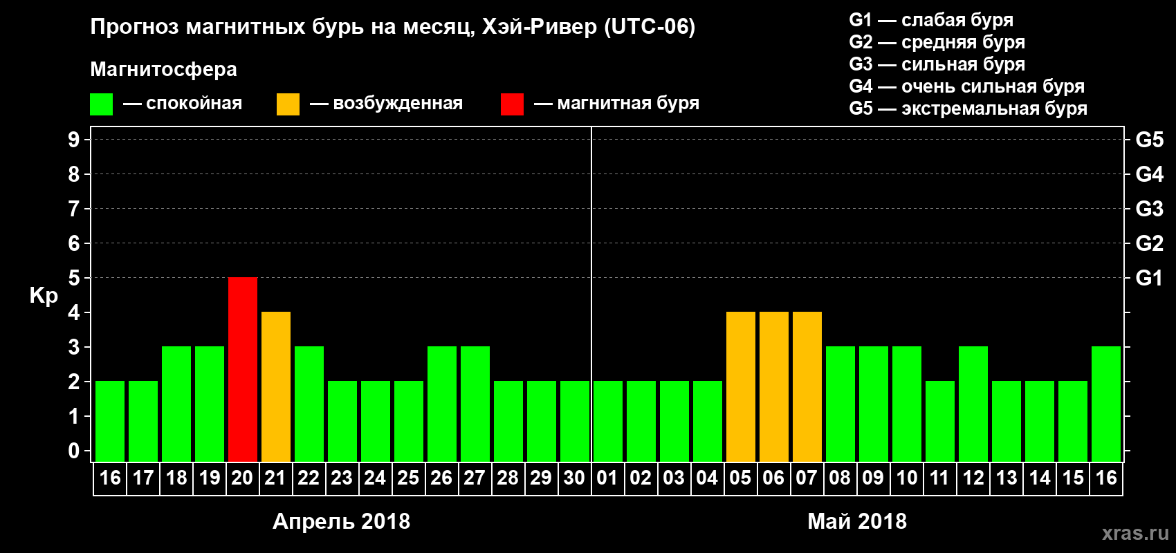Прогноз магнитных бурь в Хэй-Ривере на 16 апреля 2018 года