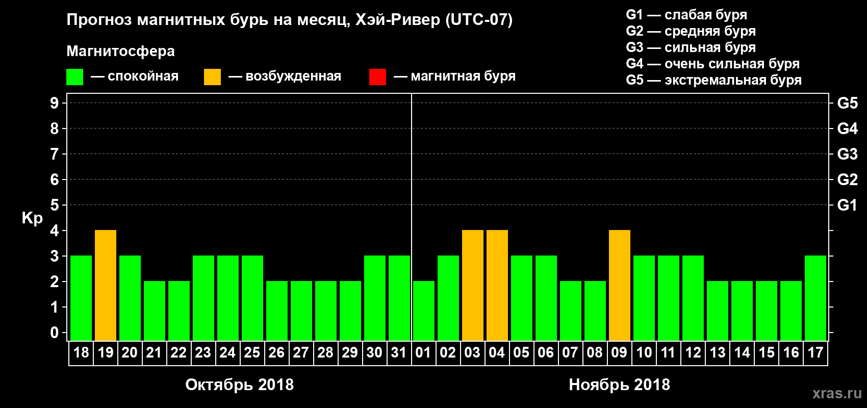 Прогноз магнитных бурь в Хэй-Ривере — 18 октября 2018 года