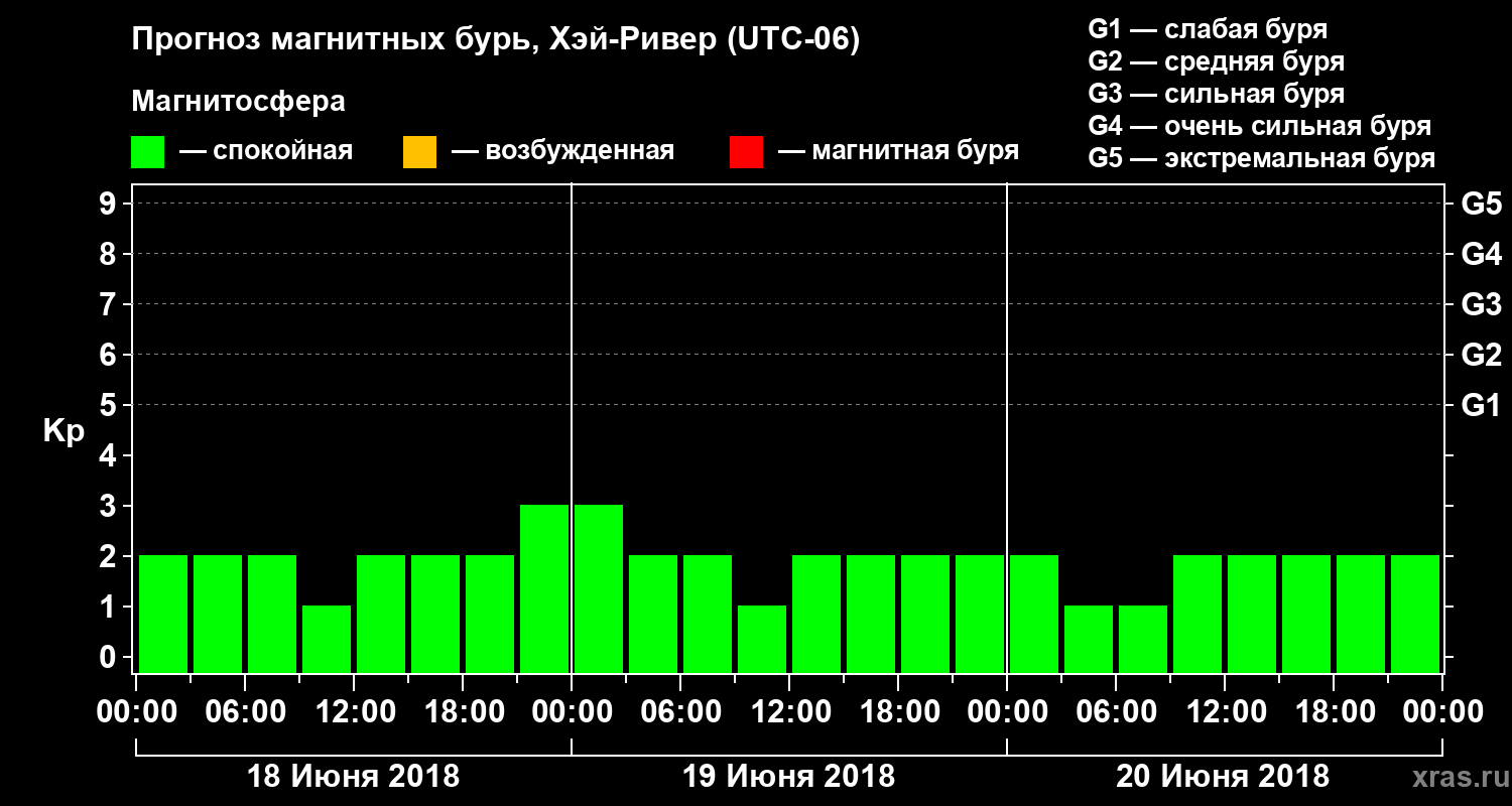 Прогноз магнитных бурь в Хэй-Ривере — 18 июня 2018 года