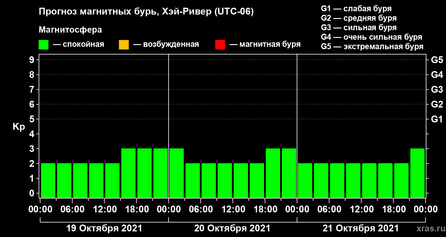 Прогноз магнитных бурь в Хэй-Ривере — 19 октября 2021 года