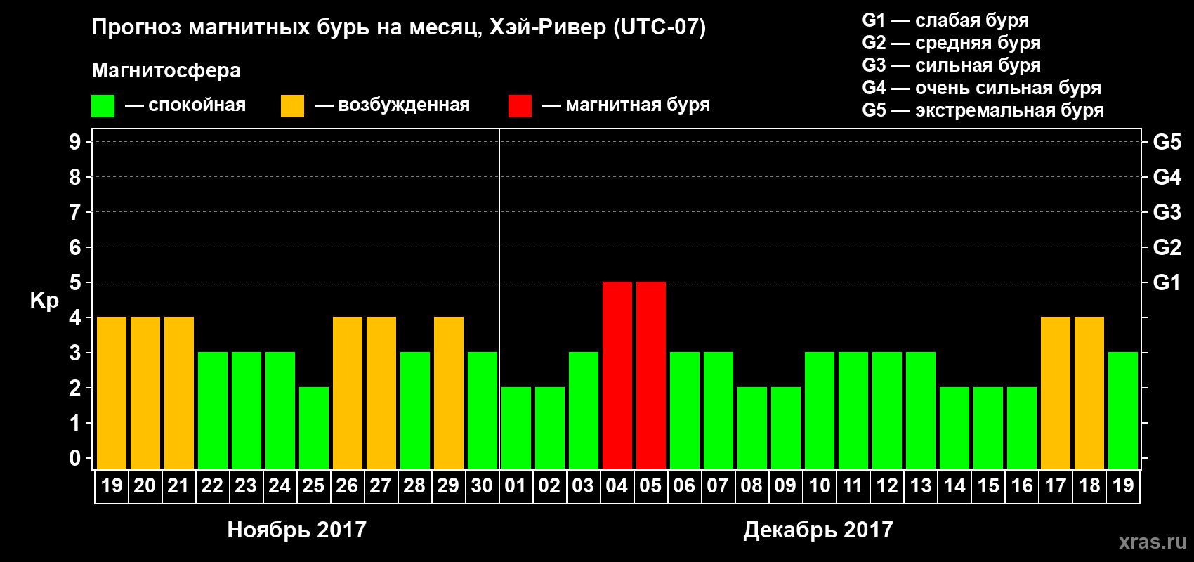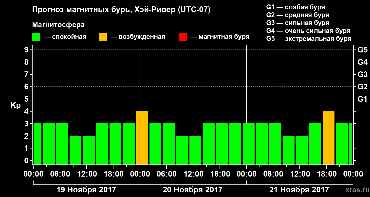 Прогноз магнитных бурь в Хэй-Ривере — 19 ноября 2017 года