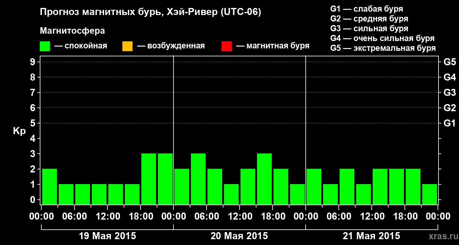 Прогноз магнитных бурь в Хэй-Ривере — 19 мая 2015 года