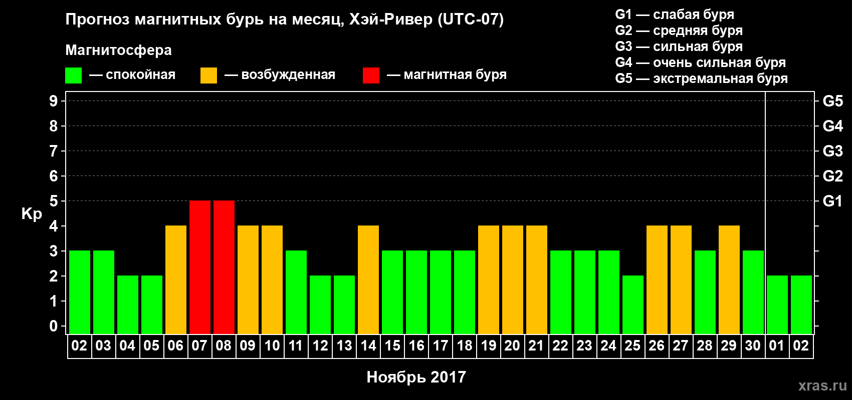 Прогноз магнитных бурь в Хэй-Ривере — 2 ноября 2017 года
