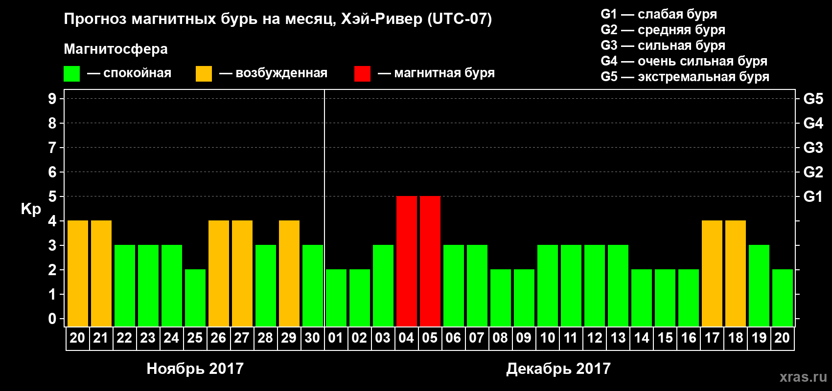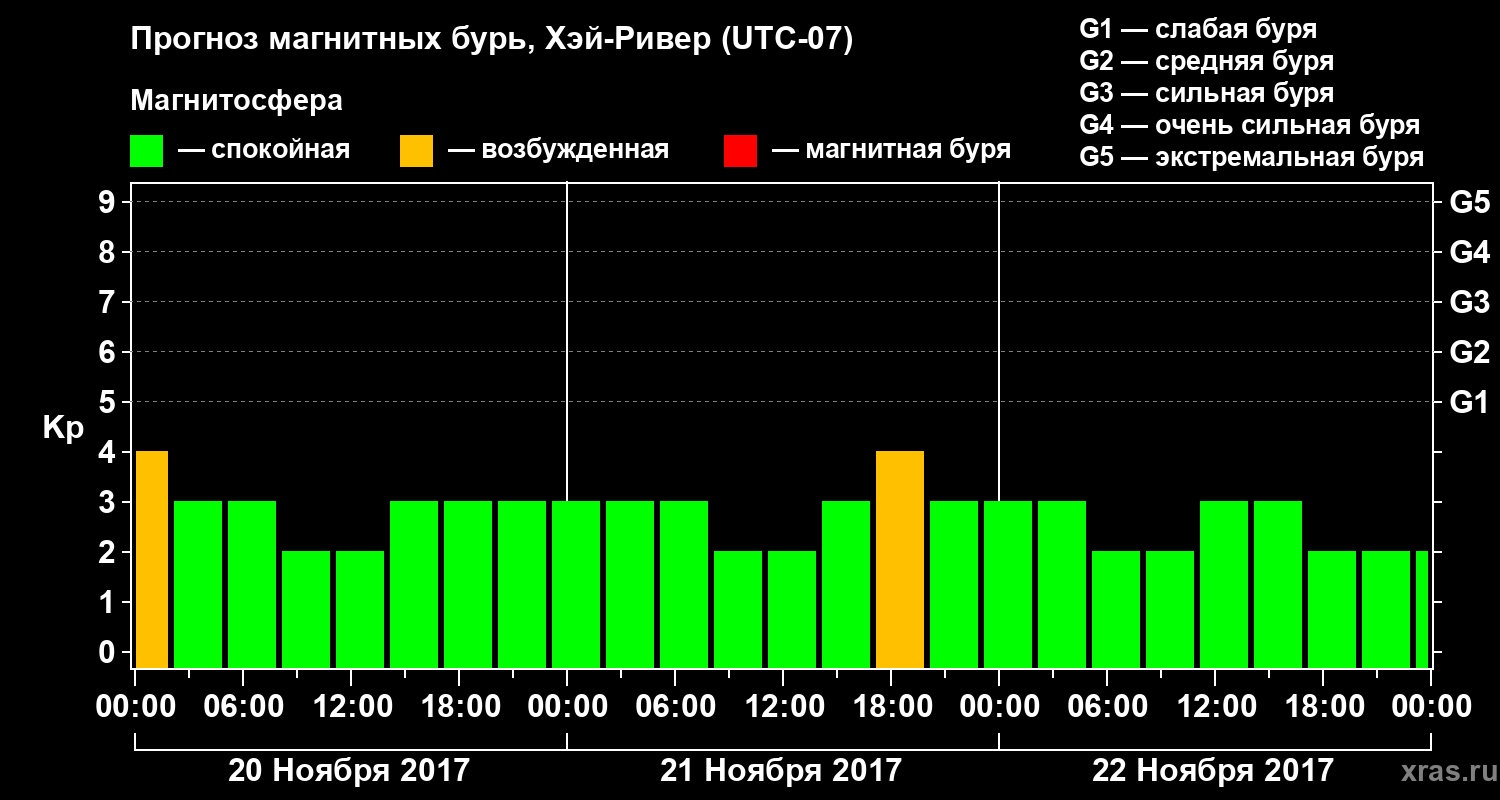 Прогноз магнитных бурь в Хэй-Ривере — 20 ноября 2017 года