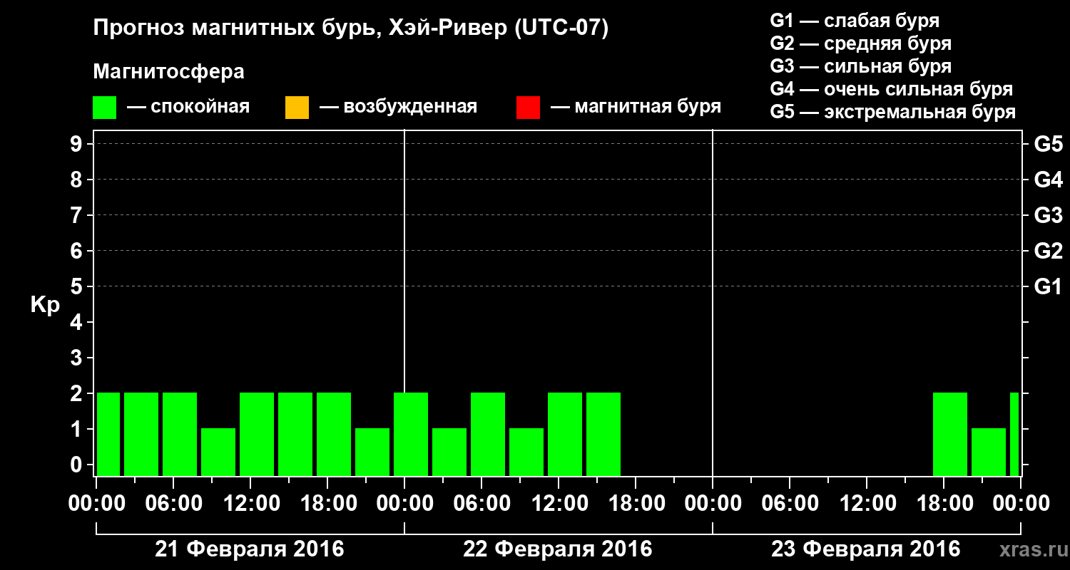 Прогноз магнитных бурь в Хэй-Ривере на 21 февраля 2016 года