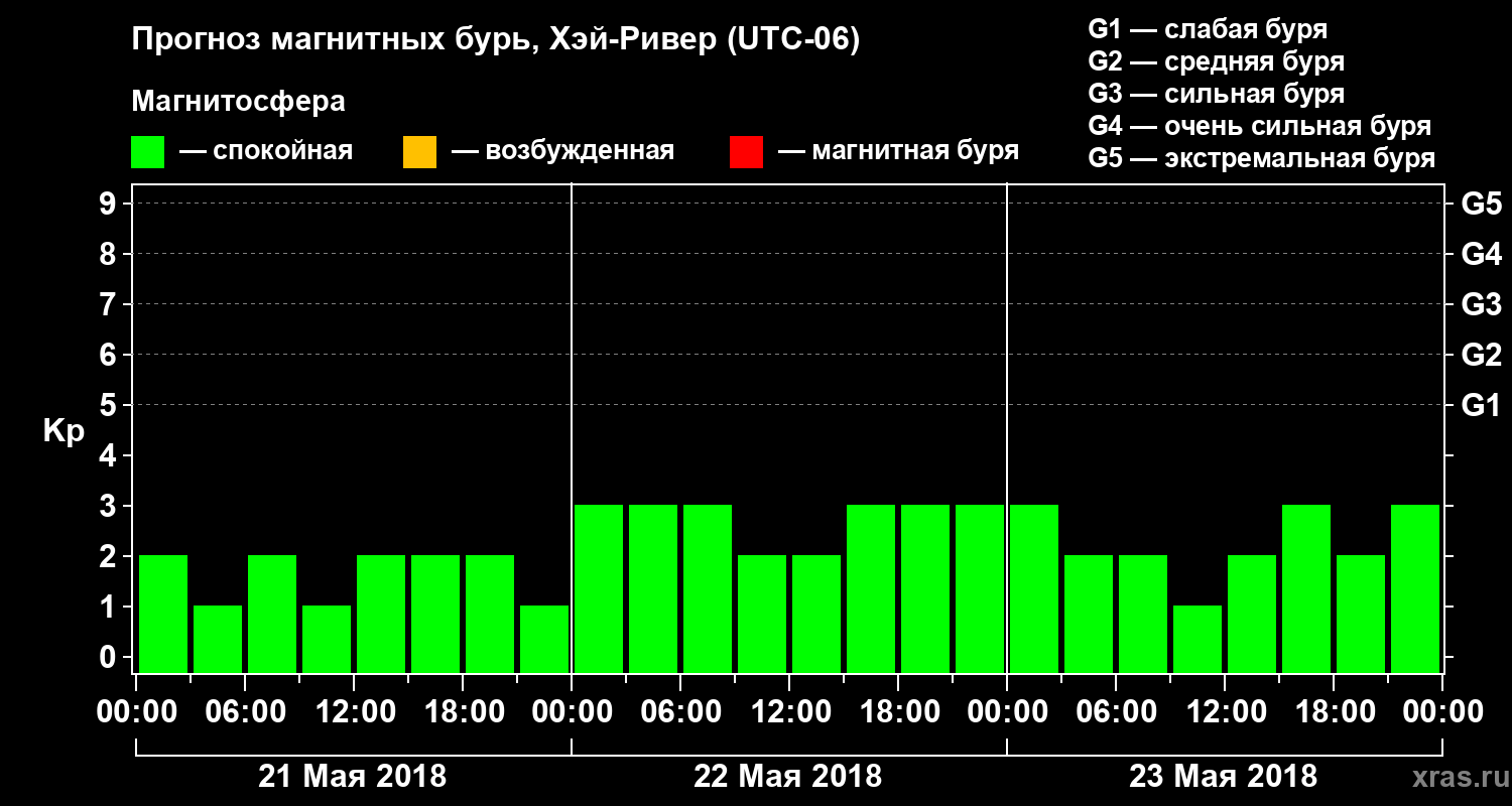 Прогноз магнитных бурь в Хэй-Ривере на 21 мая 2018 года