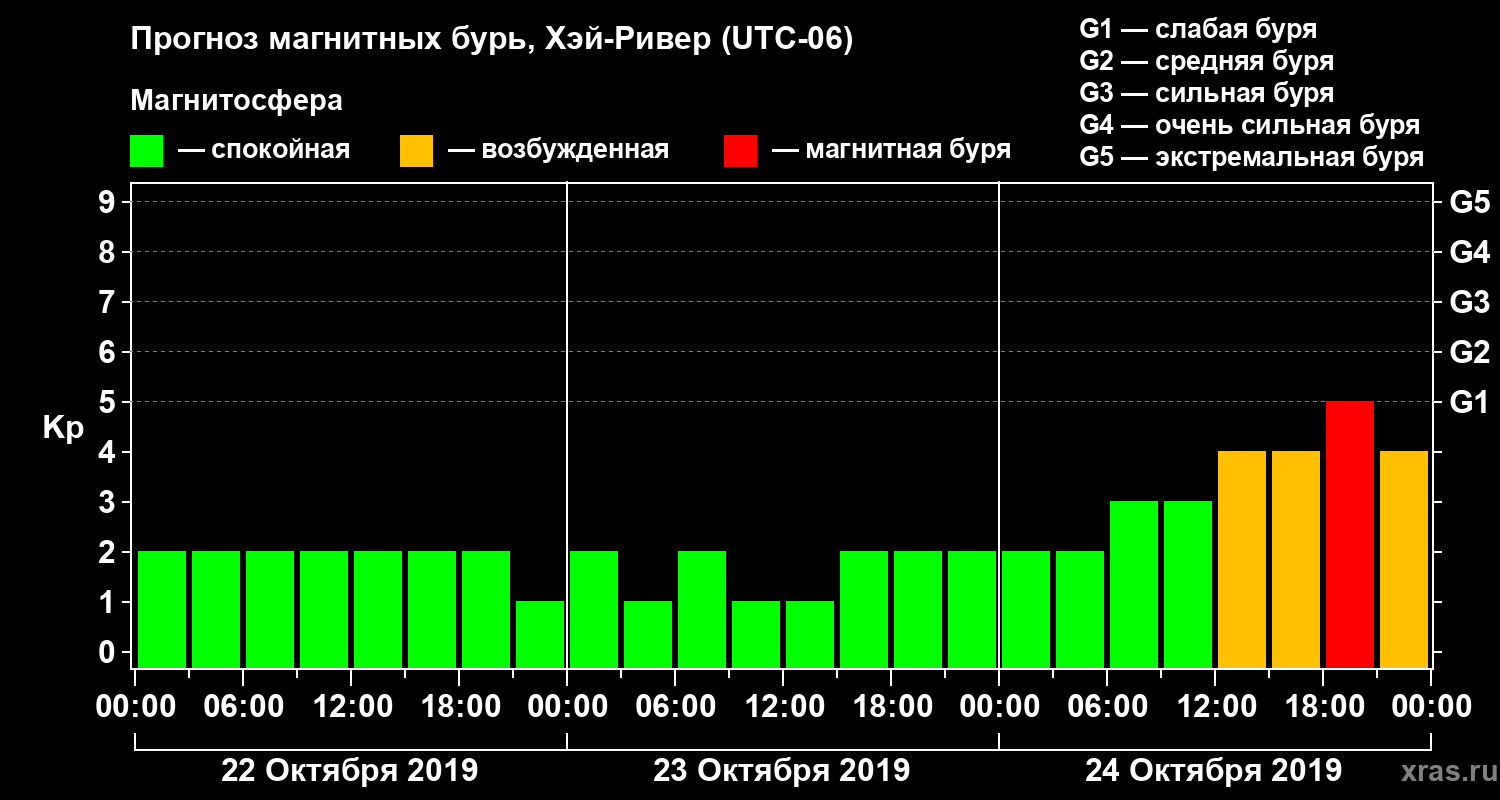 Прогноз магнитных бурь в Хэй-Ривере на 22 октября 2019 года