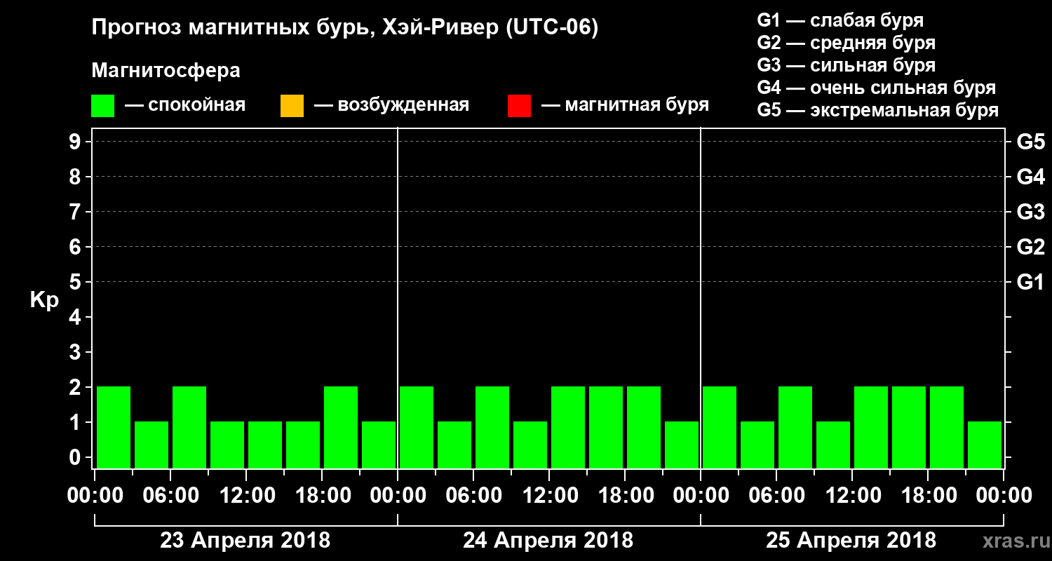 Прогноз магнитных бурь в Хэй-Ривере на 23 апреля 2018 года