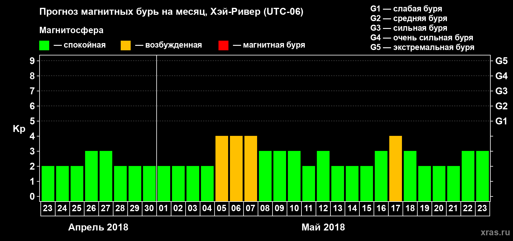 Прогноз магнитных бурь в Хэй-Ривере — 23 апреля 2018 года