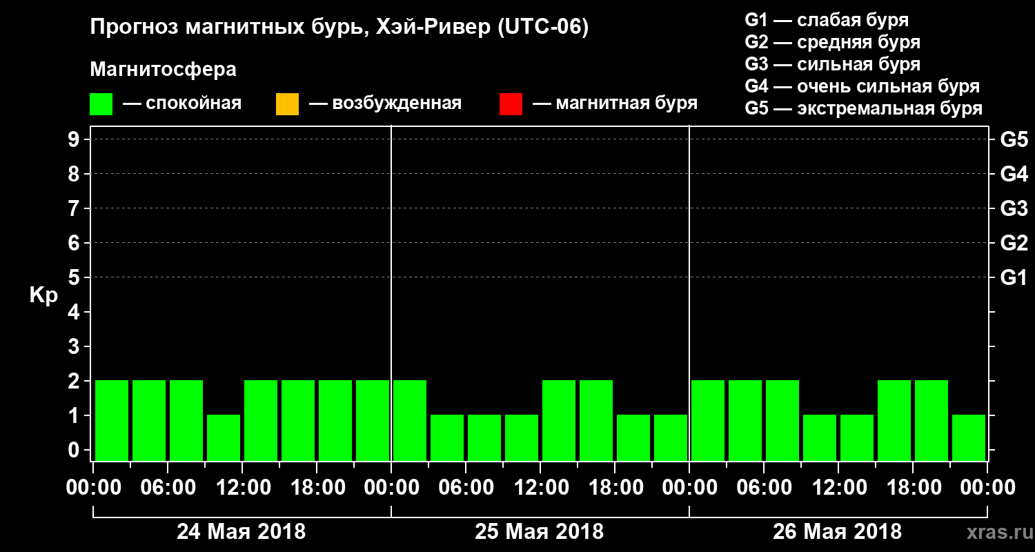 Прогноз магнитных бурь в Хэй-Ривере на 24 мая 2018 года