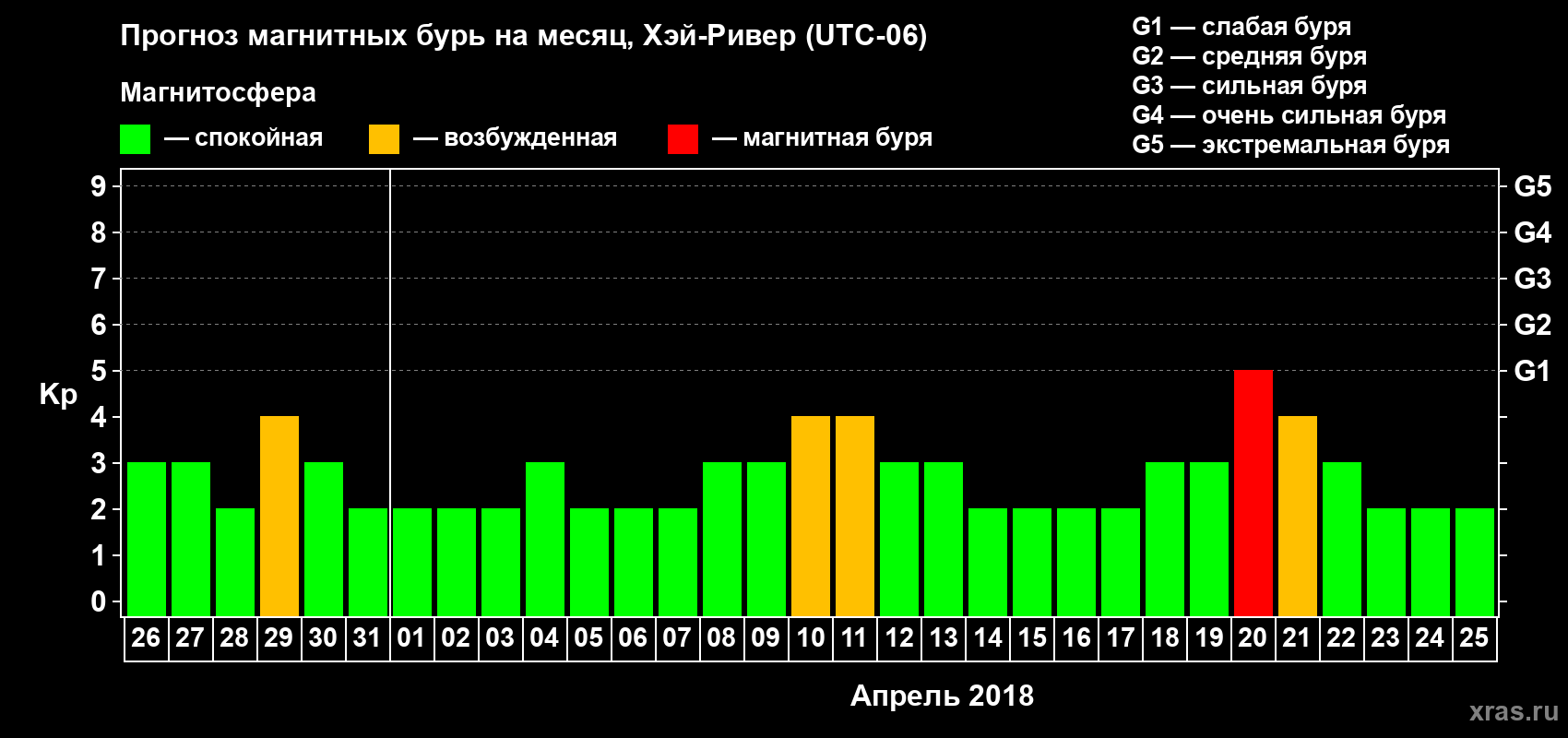 Прогноз магнитных бурь в Хэй-Ривере — 26 марта 2018 года