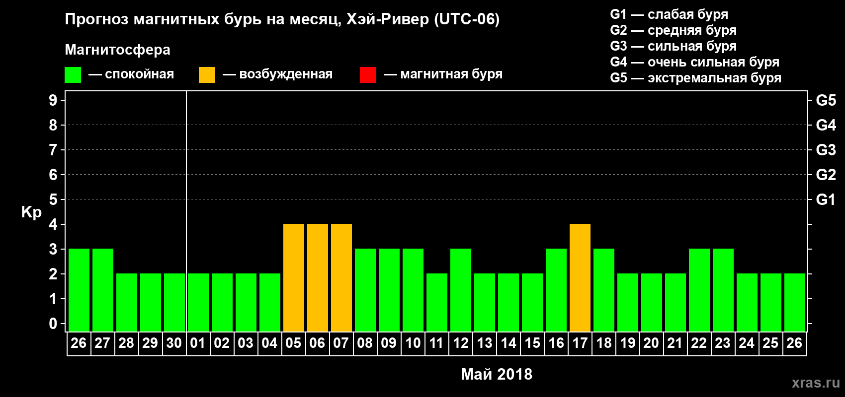Прогноз магнитных бурь в Хэй-Ривере на 26 апреля 2018 года