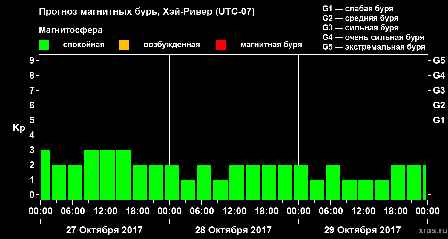 Прогноз магнитных бурь в Хэй-Ривере — 27 октября 2017 года
