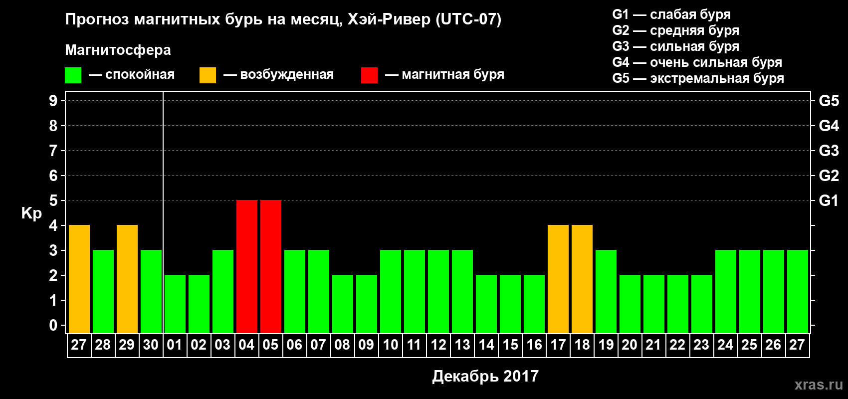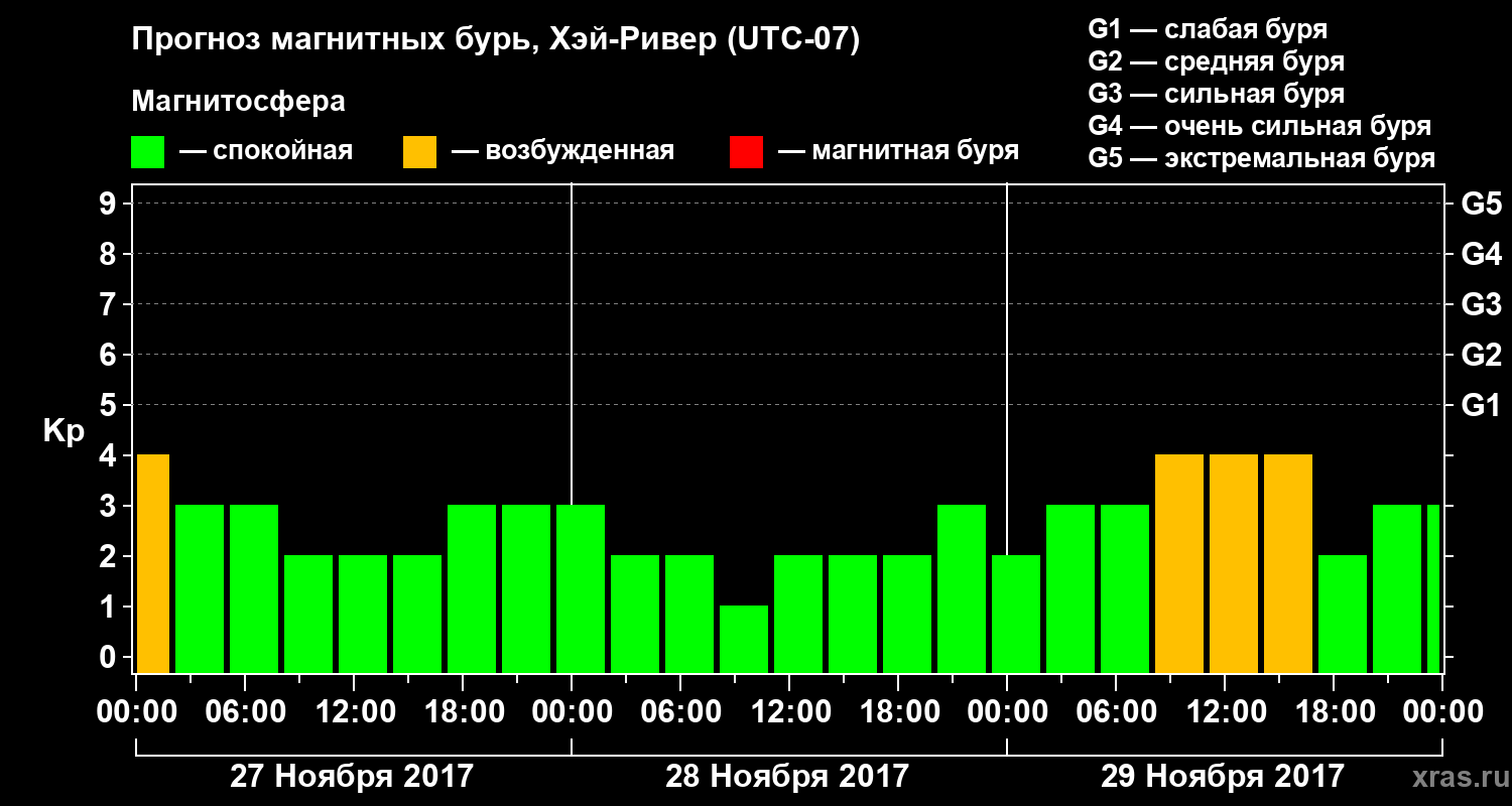 Прогноз магнитных бурь в Хэй-Ривере — 27 ноября 2017 года