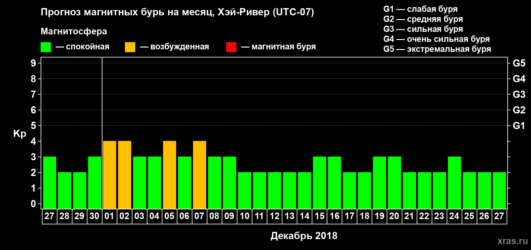 Прогноз магнитных бурь в Хэй-Ривере — 27 ноября 2018 года