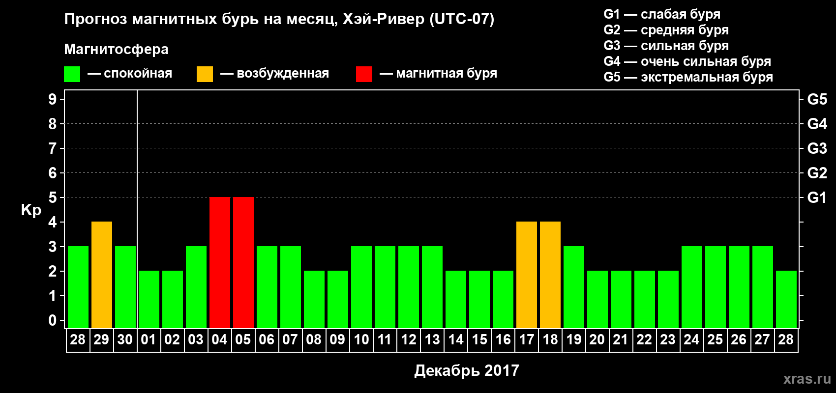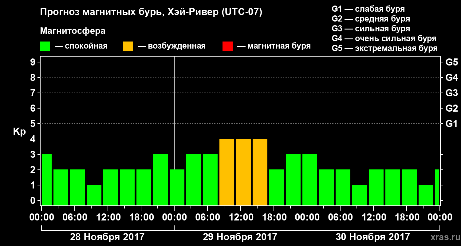 Прогноз магнитных бурь в Хэй-Ривере — 28 ноября 2017 года