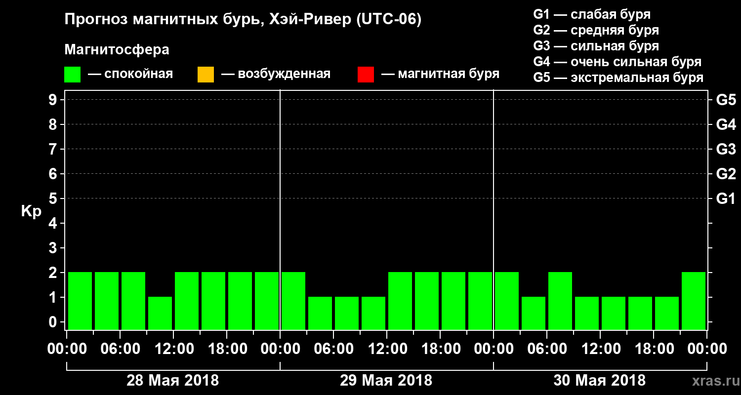 Прогноз магнитных бурь в Хэй-Ривере — 28 мая 2018 года