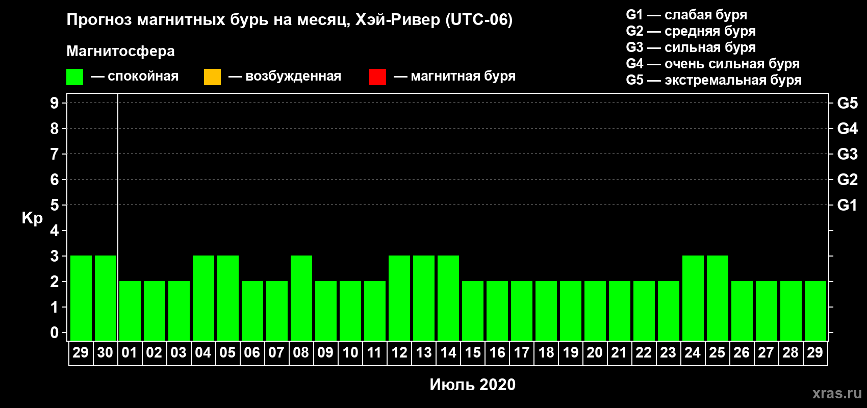 Прогноз магнитных бурь в Хэй-Ривере — 29 июня 2020 года