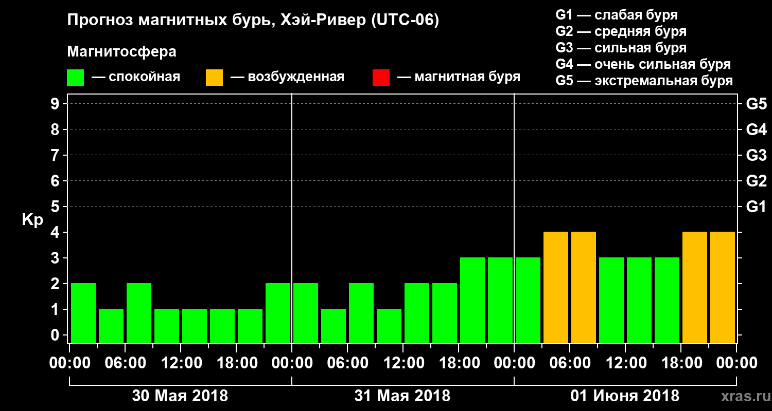 Прогноз магнитных бурь в Хэй-Ривере — 30 мая 2018 года
