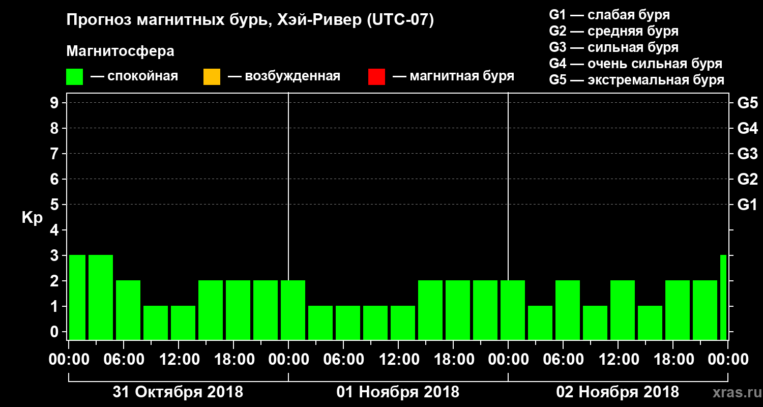 Прогноз магнитных бурь в Хэй-Ривере — 31 октября 2018 года