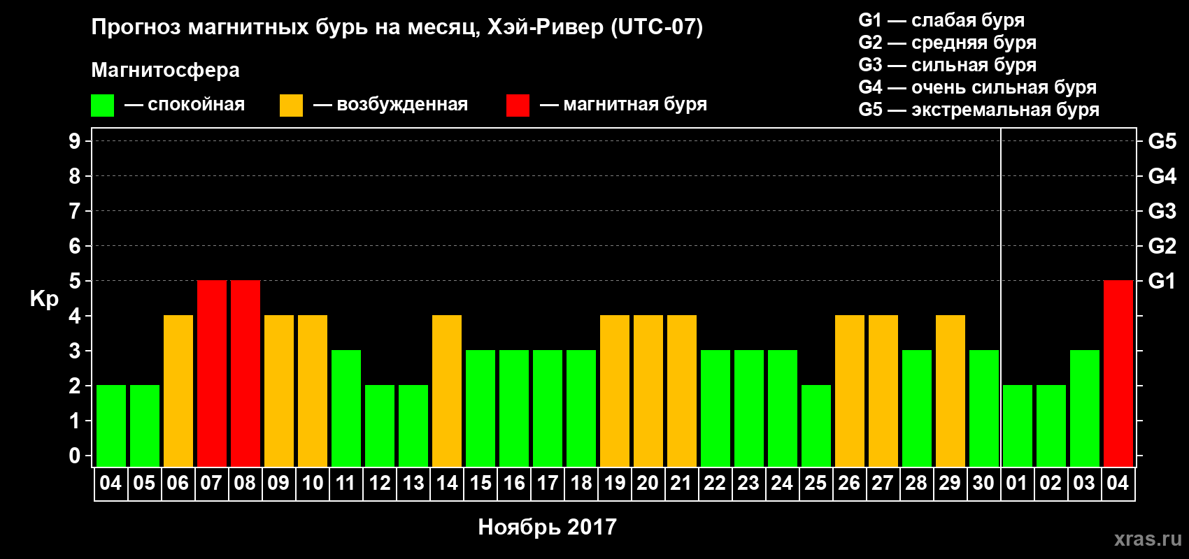 Прогноз магнитных бурь в Хэй-Ривере — 4 ноября 2017 года