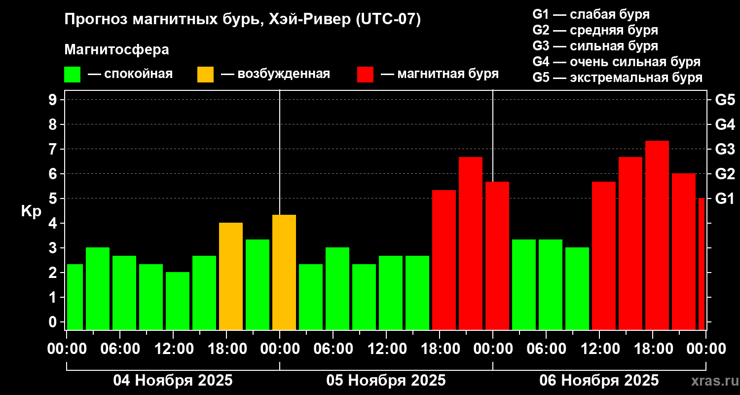 Прогноз магнитных бурь в Хэй-Ривере — 4 ноября 2025 года