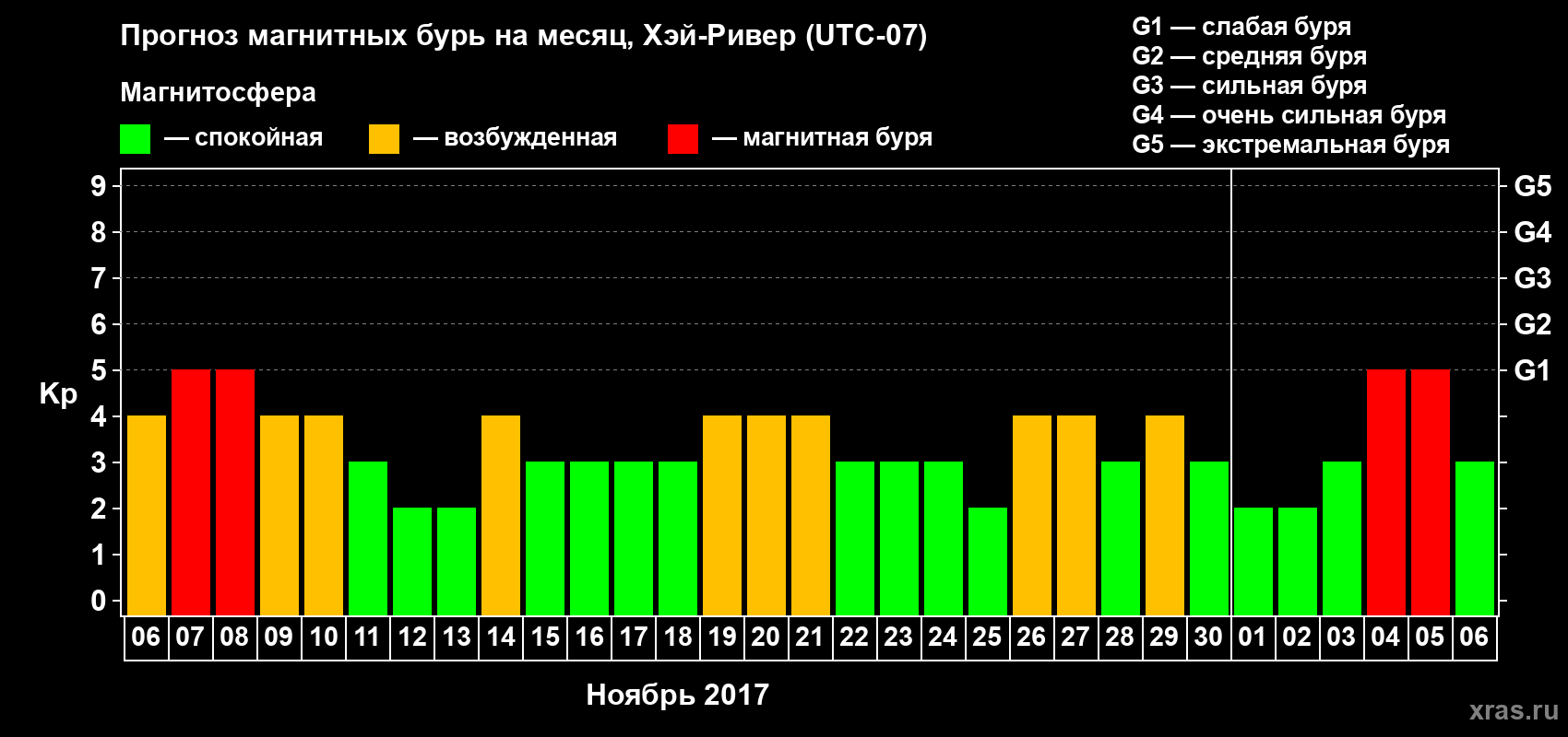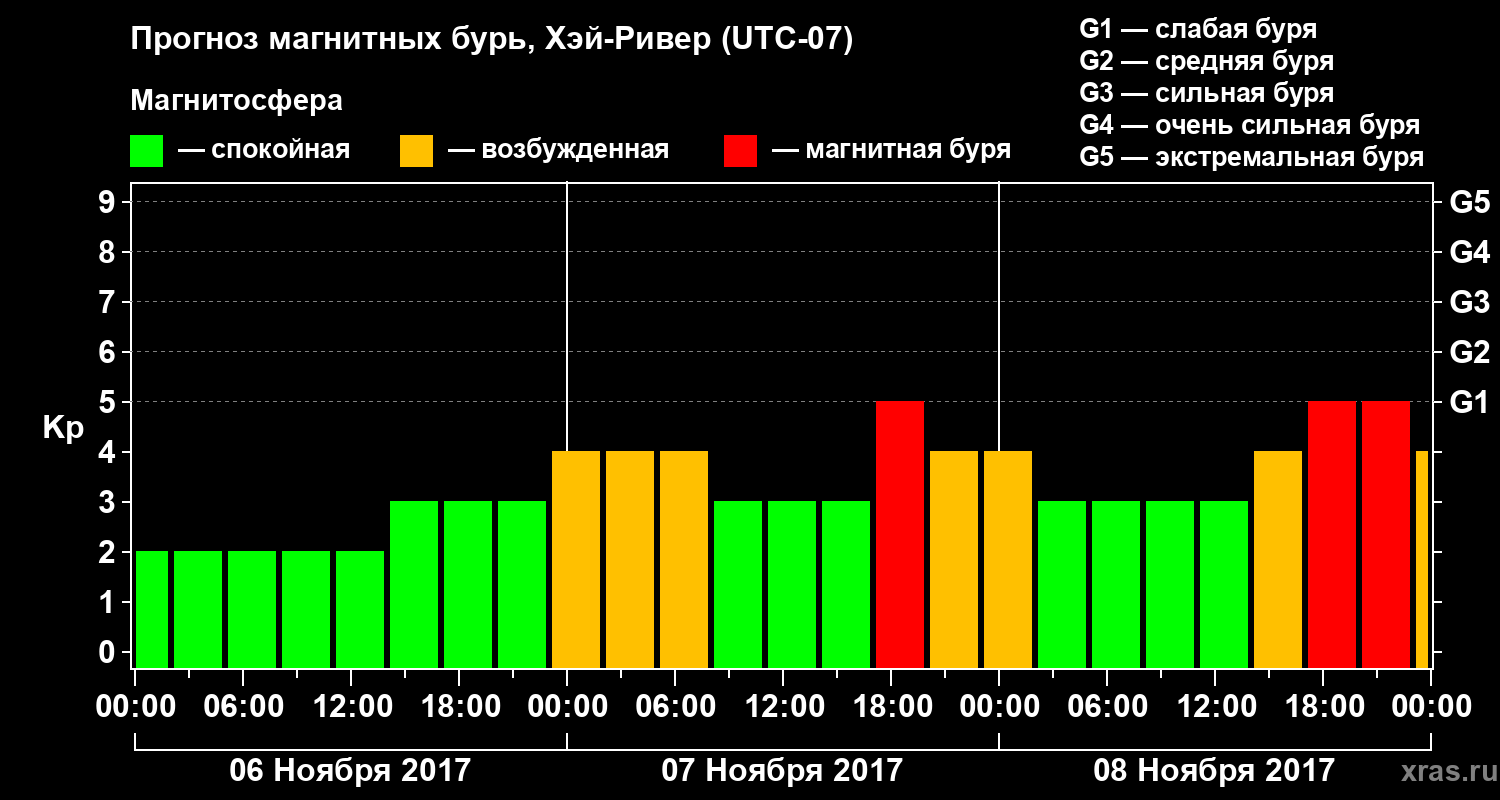Прогноз магнитных бурь в Хэй-Ривере — 6 ноября 2017 года