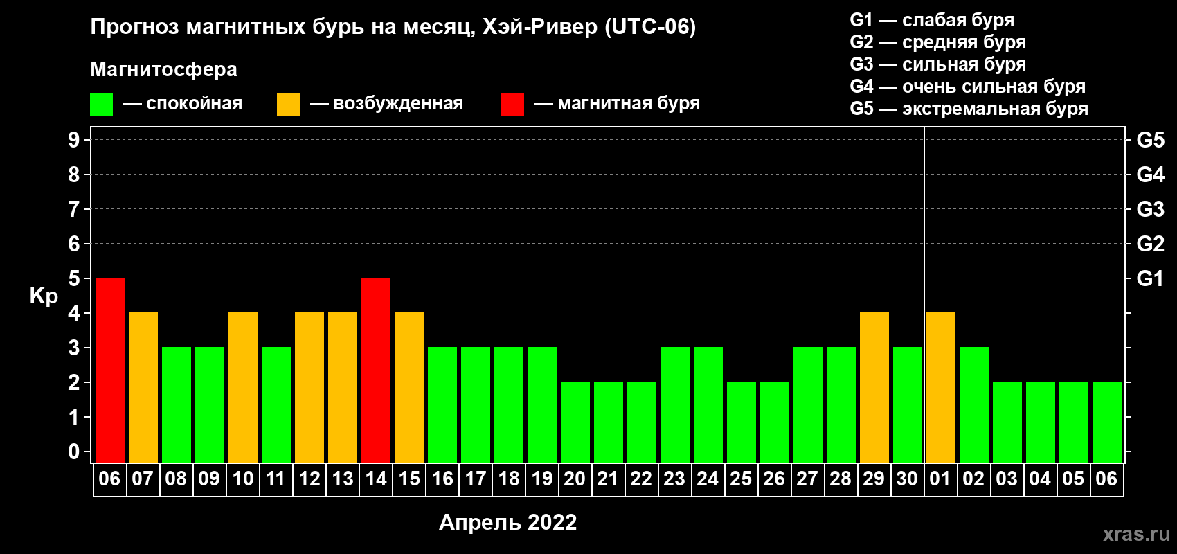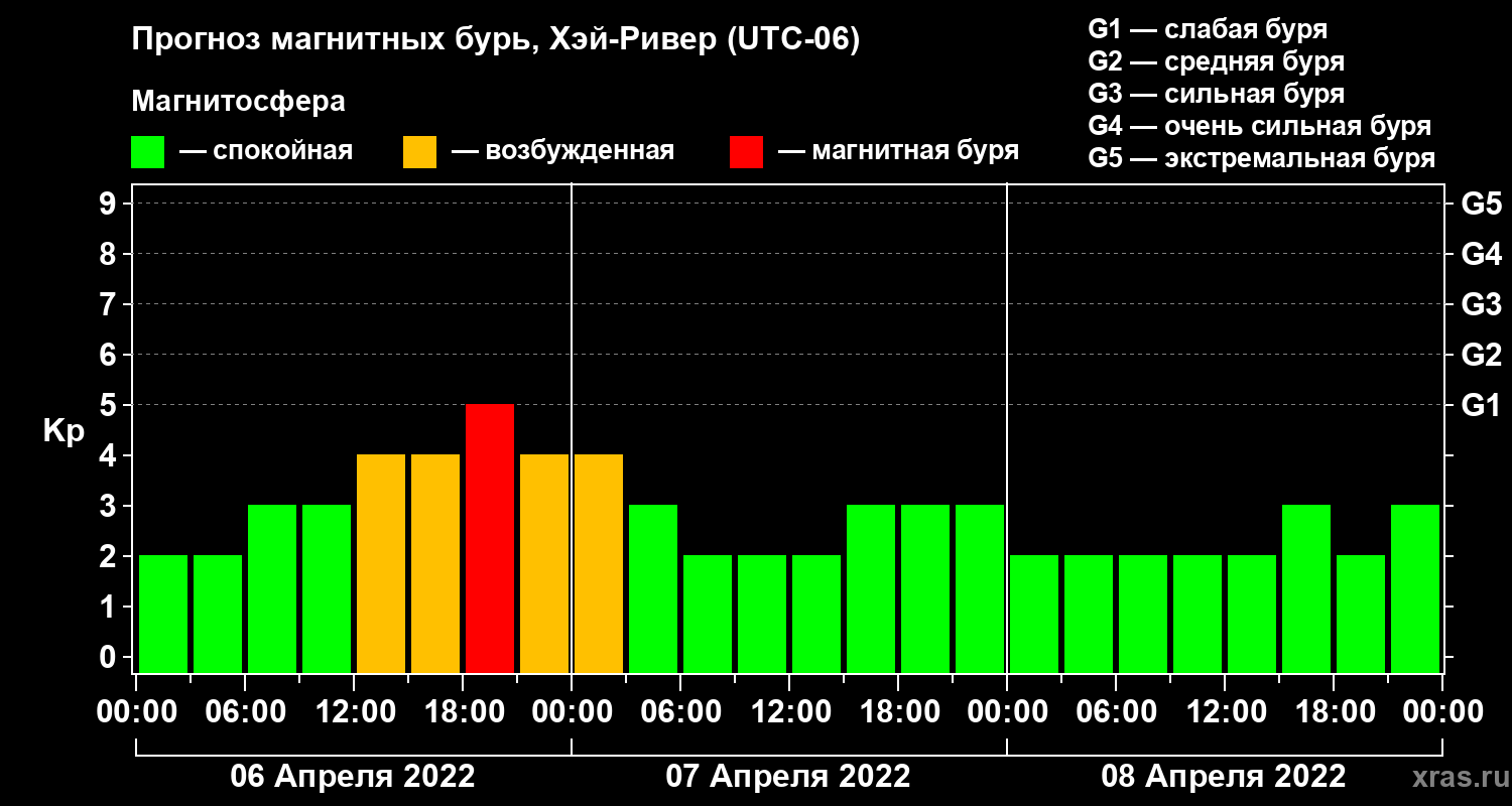 Прогноз магнитных бурь в Хэй-Ривере на 6 апреля 2022 года