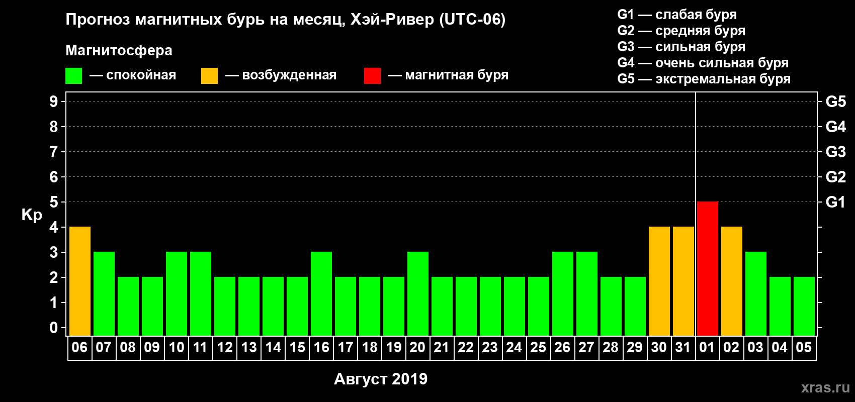 Прогноз магнитных бурь в Хэй-Ривере — 6 августа 2019 года