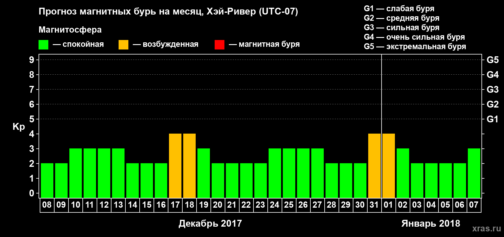 Прогноз магнитных бурь в Хэй-Ривере на 8 декабря 2017 года